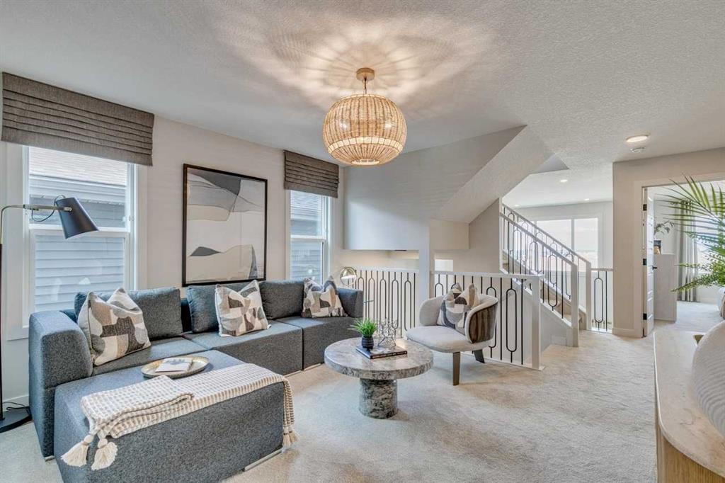 Built by Sterling Homes, this home showcases on-trend, designer-curated interior selections tailored for a home that feels personalized. Energy efficient and smart home features, plus moving services. Experience this exceptional 2025 home featuring a side entrance, 9’ basement ceiling, and 2-bedroom rough-ins for potential future development. Designed for flexible living, it offers a main floor bedroom with full bath, open-to-below, electric fireplace with maple floating shelves, paint grade railing with iron spindles, LVP throughout the main floor, rear deck with BBQ gas line rough-in, and additional windows throughout. The executive kitchen boasts stainless steel appliances with gas cooktop plus a spice kitchen with gas range and pantry shelving. Upstairs includes a 5-piece ensuite with soaker tub, bank of drawers, fiberglass base shower with tiled walls and niche, LVT flooring in ensuite and main bath, plus a 3rd floor loft with bedroom, full bath, and balcony. This energy-efficient home is Built Green certified and includes triple-pane windows, a high-efficiency furnace, and a solar chase for a solar-ready setup. Home includes blower door testing for energy efficiency, plus an electric car charger rough-in, it’s designed for sustainable, future-forward living. Featuring smart home technology, this home includes a programmable thermostat, ring camera doorbell, smart front door lock, smart and motion-activated switches—all seamlessly controlled via an Amazon Alexa touchscreen hub. Photos are a representative.