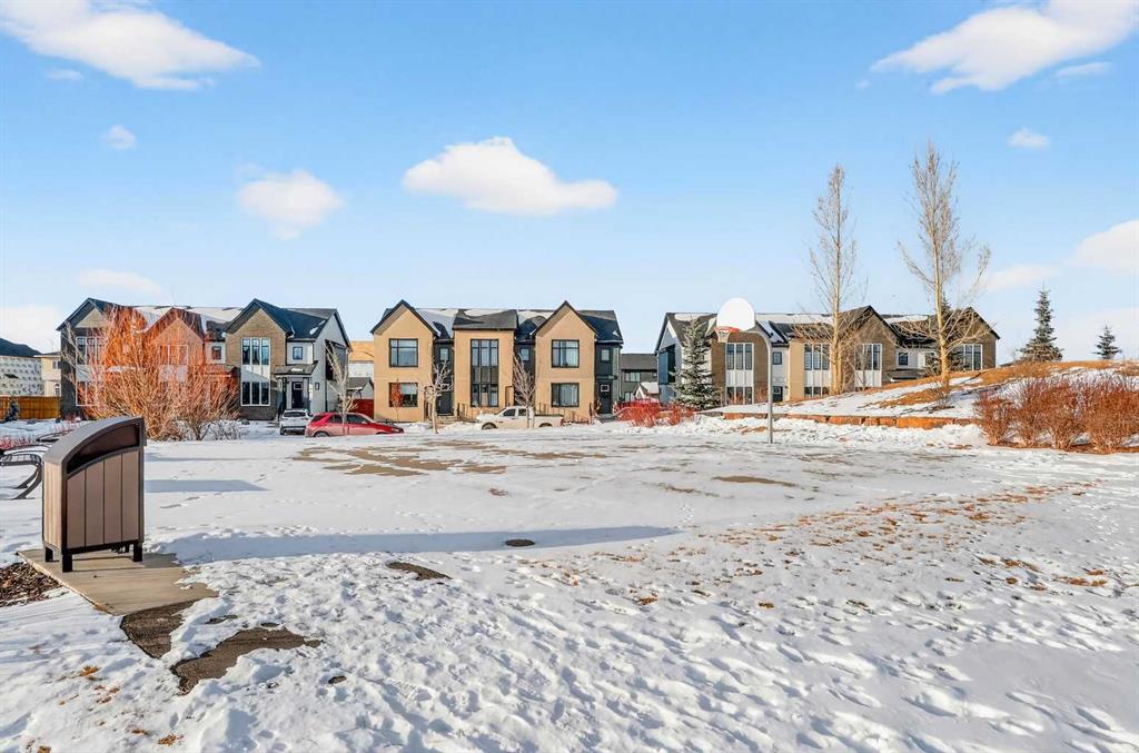 Experience the height of sophisticated living in this highly coveted luxury townhome, where a generous floor plan meets modern comfort and refined finishes. Proudly presented by StreetSide – this thoughtfully designed unit features 3 bedrooms, 2.5 bathrooms, and a front attached double car garage. The heart of the home is a spacious kitchen with a large central island, polished white quartz countertops, upgraded stainless steel appliances, and elegant sliding French patio doors that open to your covered deck area—ideal for both everyday living and entertaining. Light floods into the living room with ease through the large window, while luxury vinyl plank flooring flows throughout the main floor living areas, and carpeted stairs leading to the upper level and bedrooms provide extra warmth. The primary ensuite is a private sanctuary, complete with tile flooring, double sinks, a freestanding soaker tub, and an oversized tile-and-glass shower delivering spa-inspired comfort at home. The unfinished basement with roughed-in plumbing provides future potential for additional living space tailored to your needs. Professional landscaping and fencing complete your new home. Ideally located in the award-winning community of Harmony, residents enjoy Mickelson National Golf Course, private lake amenities, scenic walking and biking trails, and a wellness-focused lifestyle—just a shorty drive from Calgary city minutes and 45 minutes from the Rocky Mountains, where nature and convenience come together effortlessly