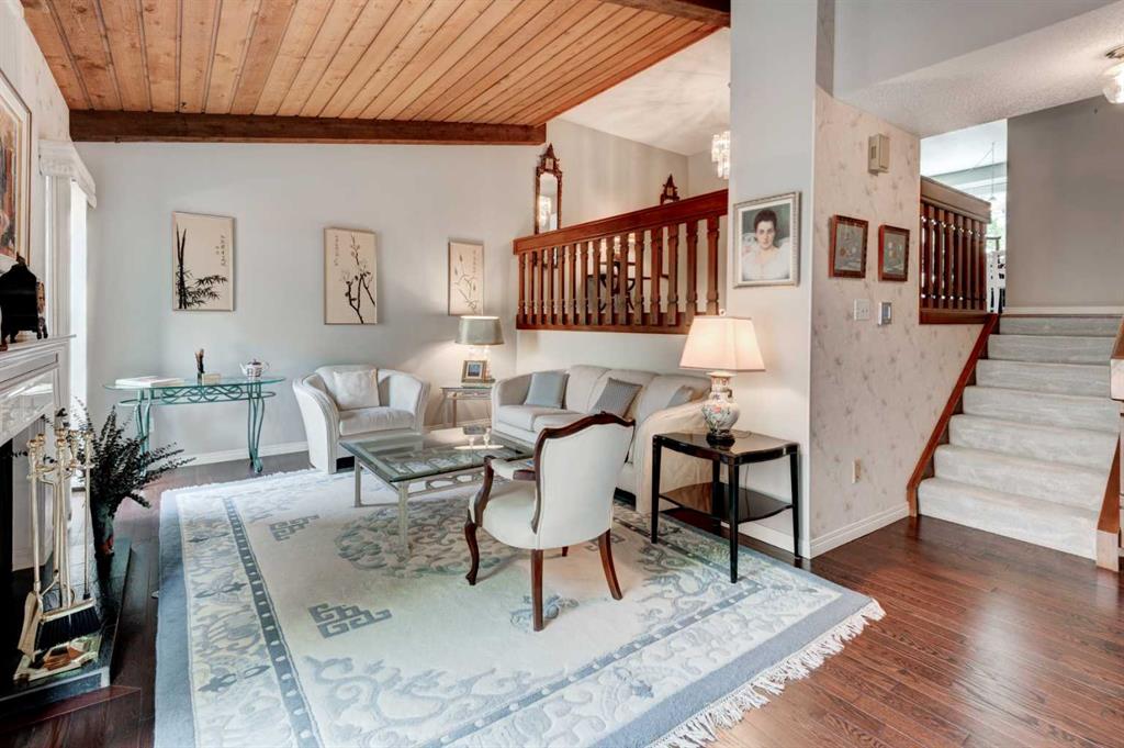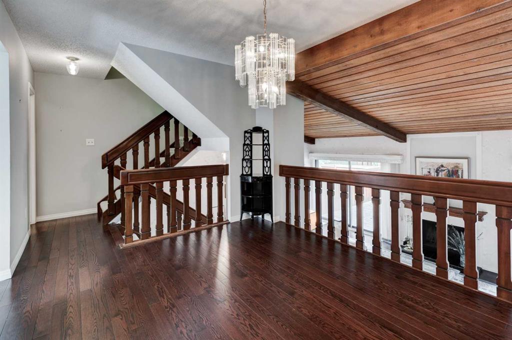 Welcome to Oakwood Lane — a wonderfully maintained, quiet, and family-friendly complex known for its mature trees, peaceful atmosphere, and excellent management. This beautifully designed 4-level split townhome offers a unique layout, thoughtful updates, and warm character throughout. The welcoming foyer provides convenient access to the heated attached garage, basement, and the rest of the home. Just a few steps up, you'll find a spacious living room with stunning cedar-vaulted ceilings, a cozy wood-burning fireplace, and access to a large private deck — perfect for relaxing or entertaining. Gorgeous hardwood flooring in the living room and continues into the bright flex space on the next level, ideal for a family dining room, home office, or playroom. The adjacent kitchen is a true highlight, featuring quartz countertops, soft-close cabinets and drawers, a sleek glass tile backsplash, stainless steel appliances, and a granite double sink. Recent 2024 upgrades include the fridge, dishwasher, kitchen faucet, washing machine, and a 2025 hot water tank. The white cabinetry and natural light make the space feel fresh and inviting, while the nearby dining area is perfect for everyday meals or hosting. A small powder room completes this level. Upstairs, you’ll find two spacious bedrooms, including a generous primary suite with its own private balcony, a walk-through closet, and access to the full bathroom. While the upstairs full bath is fully functional, it presents a great opportunity to add value with your own personal touch and modern updates. The top floor also includes a large linen closet and an additional storage closet — a rare and welcome bonus. This home offers exceptional value and is conveniently located just steps from a nearby shopping area for everyday essentials. You'll also enjoy quick access to transit, Stoney Trail, Glenmore Park, Fish Creek Park, and the Southland Leisure Centre. With its functional layout, tasteful upgrades, and unbeatable location in a well-maintained complex, this is a home you won’t want to miss!