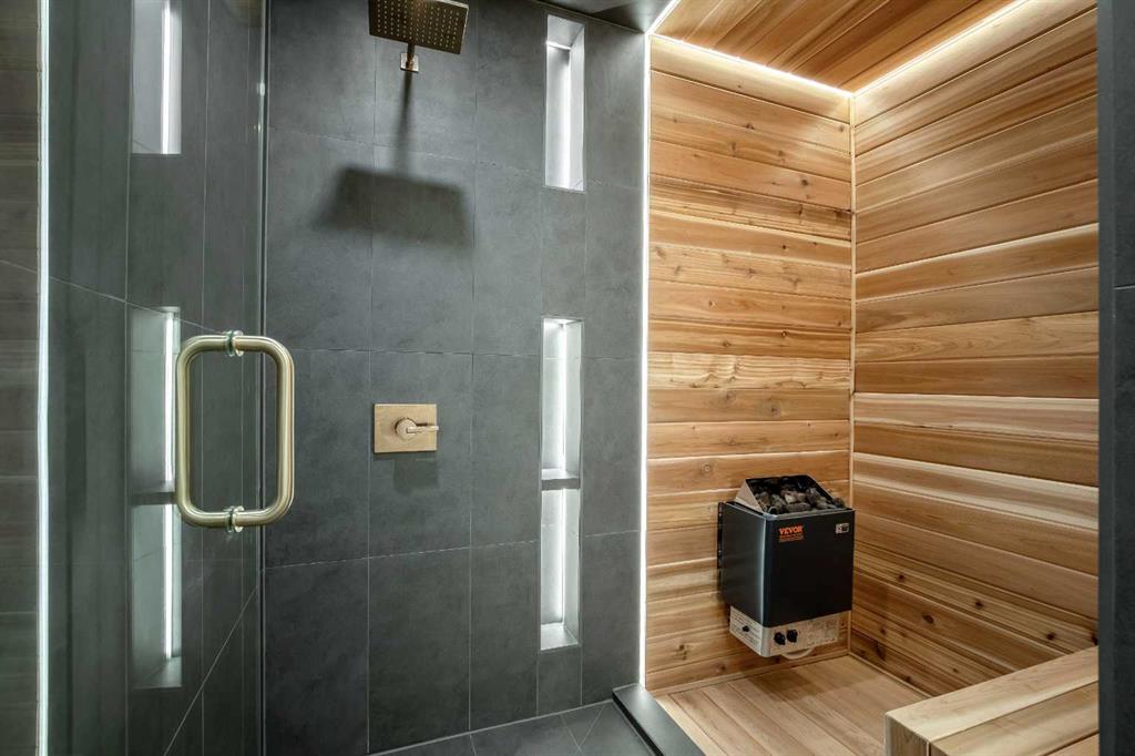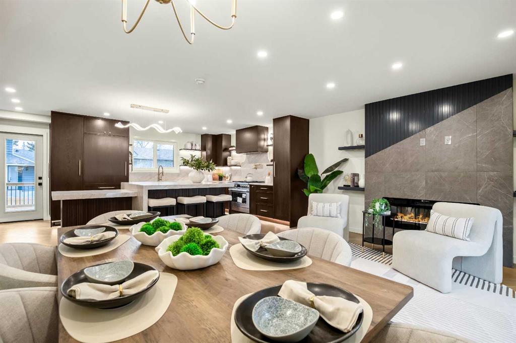 Welcome to Eleanor—an elegant, elevated, and exceptionally well-crafted home in the sought-after community of Oakridge. A fully renovated down to the studs home with over $600,000+ INVESTED (including all-new plumbing, electrical, and HVAC runs completed with all required city permits). Nestled on a quiet, tree-lined street, this home offers four rooms, a dedicated office and 2,366+ sq ft of living space, and an additional 500+ sq ft of crawl-space storage. Situated on an expansive ~7,000 sq ft lot, only minutes away from South Glenmore Park, scenic pathways, and steps from Louis Riel School, Oakridge Community Centre, Stoney Trail, tennis and pickleball courts, and more. The exterior of the home is striking yet inviting, featuring Hardie and Smart Panel siding, stained cedar soffits, new roofing and eavestroughs, and meticulously designed landscaping. The entry is equally refined, with a cedar-covered patio, garden-ready planters, and a stunning entrance inviting you home. Inside, sunlight fills every room through energy-efficient triple-pane windows, highlighting diagonal white oak floors, curved oak arches, columns, beams, and white-oak butcher block shelving throughout. The main level is anchored by a Nordic-inspired kitchen with Taj Mahal stone, chocolate coloured white oak cabinetry with dovetail drawers and fluted detailing, a ~10-foot island with drop-down seating, a built-in coffee bar, and a glass wine display. Built-in appliances include a Fisher & Paykel fridge, freezer, and dishwasher, a Bosch 6-burner range, ZLINE convection oven, and Silhouette dual temp wine fridge. The kitchen connects to the rear deck, creating a seamless transition between indoor and outdoor living. On the same level is the formal dining room and first living area, centred around a striking fireplace feature wall. Steps down, the main living room boasts dark oak ceiling beams, a second fireplace framed by custom arched cabinetry, a refined wet bar, and access to the backyard patio. This level also includes a glass-enclosed office, powder room, laundry, mudroom, and access to the finished oversized double car garage with epoxy floors and EV and garage heater rough-ins. Upstairs, the primary is a serene retreat featuring a fluted soaker tub, oversized double shower, champagne bronze fixtures, a walk-in closet, and a built-in makeup vanity. Two additional well-sized bedrooms with built-in closets and a beautifully finished full bath complete the level. The basement includes a rec room/flex room, an additional fourth bedroom, a three-piece bath with spa-calibre shower, cedar sauna and ample storage. Heated floors and champagne bronze fixtures are featured in all bathrooms. Finally, there’s new batt and blow-in insulation throughout, a tankless water heater, central A/C, sump pump, solid core doors, smart home features, camera CAT-6 roughed-in, new drywall and a BBQ gas line on the deck. Eleanor embodies refined design and understated luxury—a rare opportunity to make her your home!