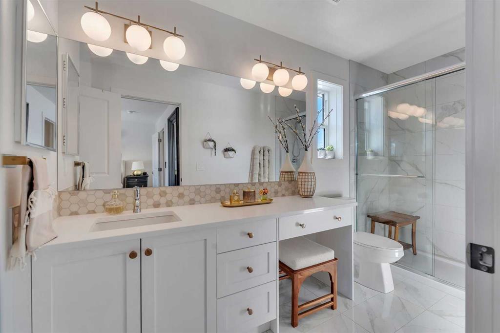 OPEN HOUSE THIS SUNDAY, MARCH 15TH FROM 1-3 PM! Yes, this is a real home. These photos were not taken from a home decor magazine or boutique catalogue. Yes, someone actually lives here, and no, this is not a staged showhome. The homeowner is fastidious. The lawn gets trimmed by hand, and the floor is scrubbed with a toothbrush. Ok, this may be a mild exaggeration. However, the fact remains that this AIR CONDITIONED home shows better than new, and it has been updated to perfection. The spacious foyer is a welcoming first impression with access to the garage and a 2-piece bath. The kitchen features top-of-the-line appliances with an induction stove. Custom light fixtures, gold-toned hardware, a silgranite oversized farm sink with a high-end faucet and a massive pantry with custom shelving make this an efficient and beautiful space. The dining room has a custom feature wall that adds richness of character. The living room has a stone-surround fireplace with a mantle with gorgeous views out the large windows. Outside, the WEST backyard has been professionally landscaped with a custom design including a privacy fence, irrigation front and back, a full-width concrete patio, mature trees, and a pergola that provides shade with a custom bench. Upstairs, you’ll love the separate laundry room with an abundance of shelving. The primary suite is well-appointed with a luxurious ensuite that includes an oversized tiled shower and an elegant vanity and a makeup spot, with access to the walk-in closet. Two additional bedrooms and a 4-piece bathroom complete this level. The unfinished basement is well laid out with two large windows for future bedrooms and rough-in plumbing. The location is superb, along the western edge of Bayview on a quiet cul-de-sac with no neighbours behind. This home is better than new.
