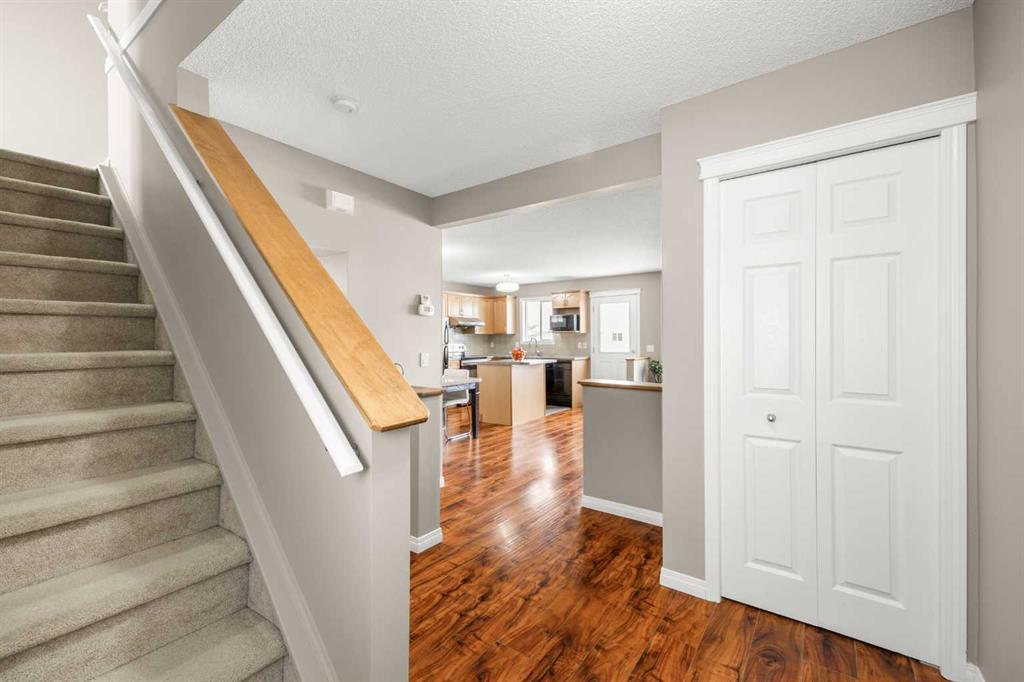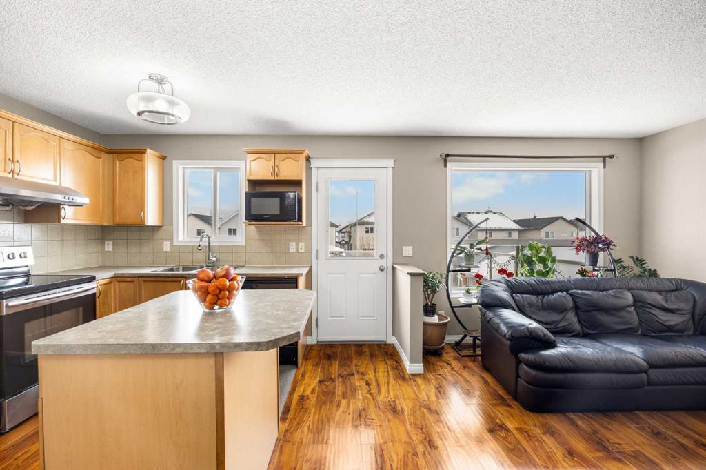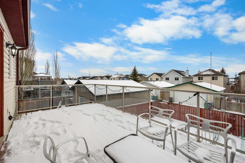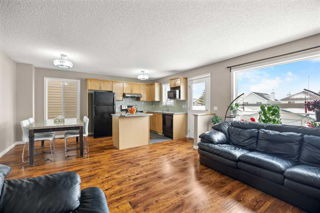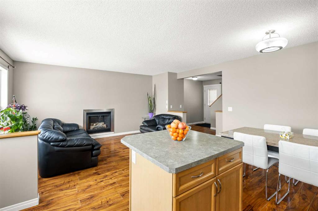 Watch your kid walk to school! Welcome to this well-maintained 3-bedroom, 3.5-bath family home with fully finished walkout basement in the sought-after community of Coventry Hills, offering over 1,800 sq ft of functional living space. Step inside to a sunny South-facing open floorplan on the main level. The spacious Living room with gas fireplace and large windows creates a bright, inviting atmosphere. On the other side, the Kitchen featuring a centre island with breakfast bar flows seamlessly into the Dining area—perfect for family meals and entertaining. From the open floorplan, step out to a full-width deck (19'2" x 9'2") with glass panel railing, ideal for outdoor relaxation. A powder room and Laundry room complete the main level.