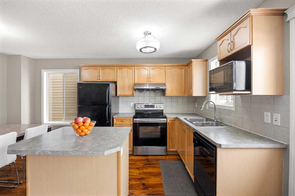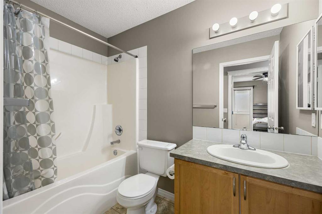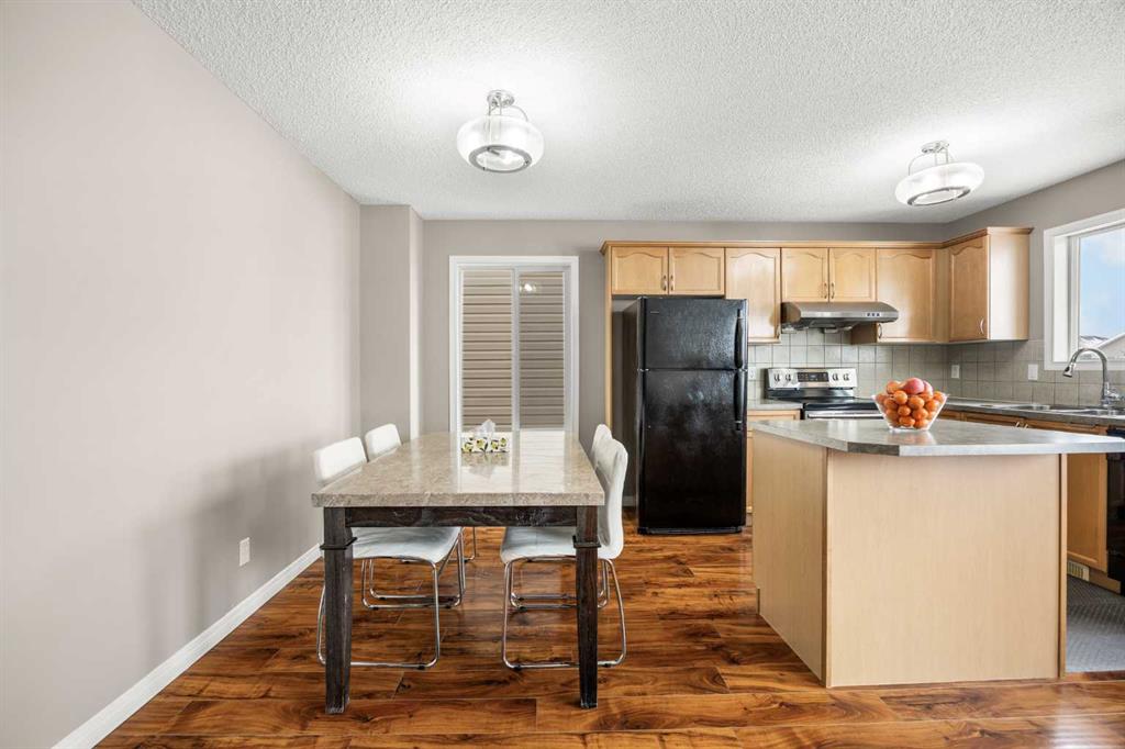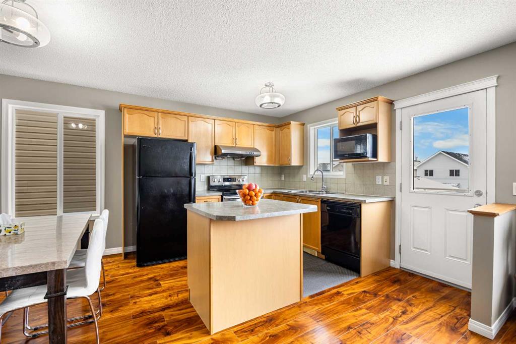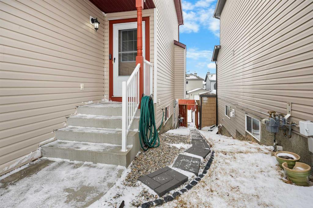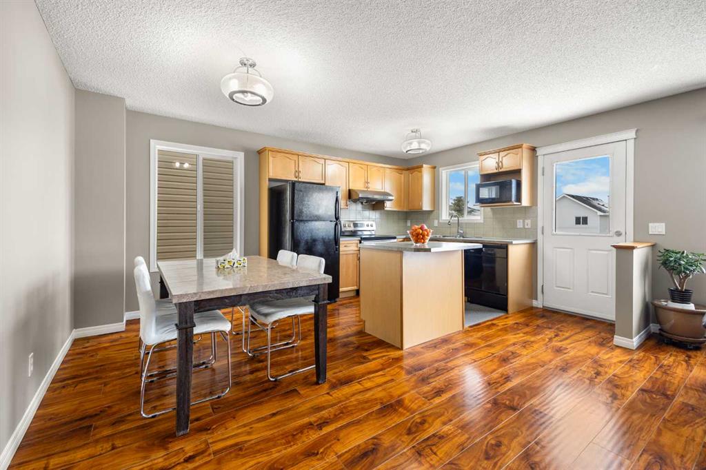Watch your kid walk to school! Welcome to this well-maintained 3-bedroom, 3.5-bath family home with fully finished walkout basement in the sought-after community of Coventry Hills, offering over 1,800 sq ft of functional living space. Step inside to a sunny South-facing open floorplan on the main level. The spacious Living room with gas fireplace and large windows creates a bright, inviting atmosphere. On the other side, the Kitchen featuring a centre island with breakfast bar flows seamlessly into the Dining area—perfect for family meals and entertaining. From the open floorplan, step out to a full-width deck (19'2" x 9'2") with glass panel railing, ideal for outdoor relaxation. A powder room and Laundry room complete the main level.
