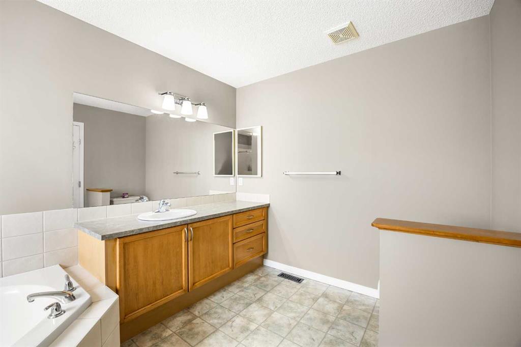 On the upper level, the sunny and spacious Primary bedroom offers a peaceful retreat with distant downtown views, walk-in closet, and large 4-piece ensuite bath featuring soaker tub and separate shower. Two additional bedrooms complete this level—one is extra large (16' x 11'5"), providing excellent space for growing families—with a shared 4-piece bath.