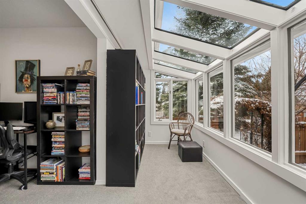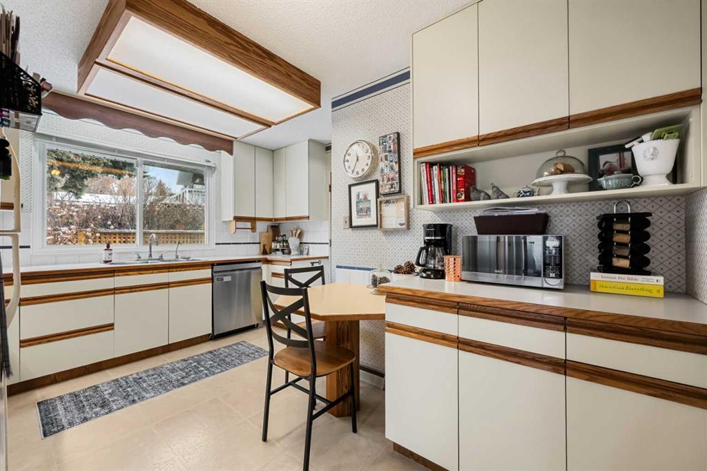 Surrounded by mature trees, lush perennial gardens, native plants, flowering shrubs, and thoughtfully curated landscaping, this property offers a true outdoor oasis that feels private, peaceful, and wonderfully established. Inside, the sunny south-facing living room is filled with natural light and centered around a cozy gas fireplace, creating a warm and inviting space to gather. The main level features three spacious bedrooms and a functional layout designed for everyday comfort. A rear mudroom provides convenient access to the garage, basement, and backyard, making busy days effortless and organized. The west-facing sunroom is a standout feature, offering the perfect place to unwind while overlooking your beautifully landscaped patio and gardens. Whether enjoying a quiet morning coffee or hosting summer evenings with friends, this space seamlessly connects indoor living with the serenity of the outdoors. The recently updated basement expands your living space with a large recreation room complete with built-ins, a second full bathroom, a fourth bedroom (window does not meet egress) and abundant storage. This level provides flexibility for guests, a home office, fitness space, or family movie nights. Meticulously maintained and lovingly cared for over the years, this home reflects true pride of ownership, with numerous thoughtful upgrades that enhance both comfort and longevity. New roof in 2017, 100 amp electrical panel in 2018, 40 amp sub panel added to garage and 12,000 BTU heater in 2021 (for welding or woodworking projects), water tank in 2025. Located less than two blocks from Nose Hill Park, you’ll enjoy immediate access to miles of walking and biking paths while still being minutes from transit, the University of Calgary, shopping, restaurants, schools, and playgrounds. This is a rare opportunity to own a timeless home in one of Calgary’s most established and sought-after communities.