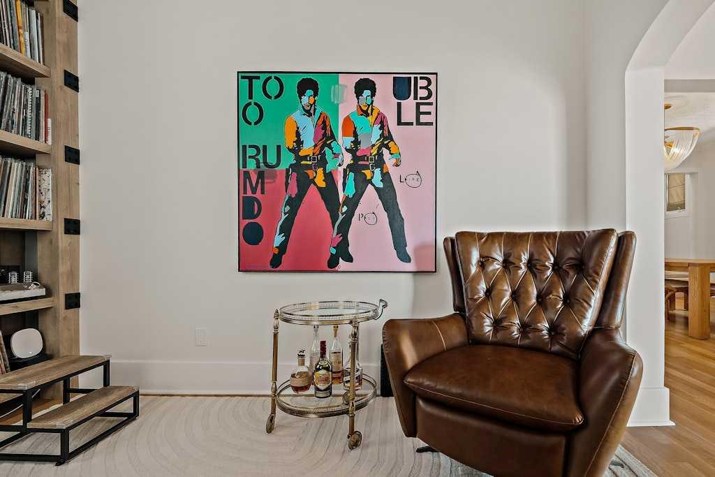 One of the home’s most distinctive spaces is the dedicated vinyl listening lounge, perfect for relaxing with music or easily used as a quiet home office.