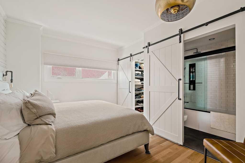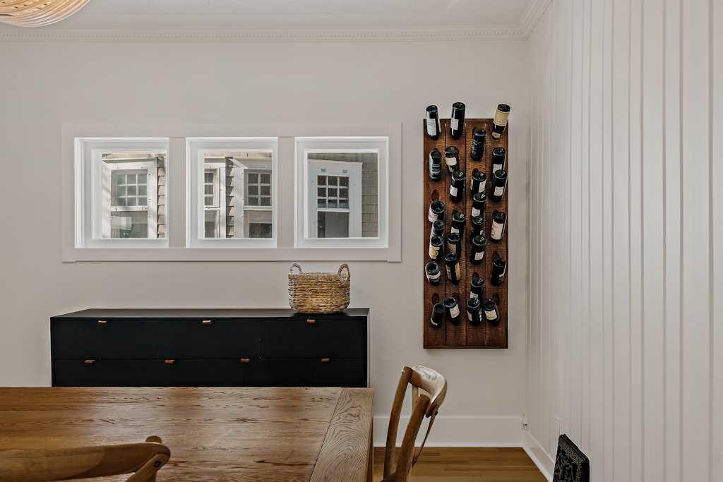 The covered Douglas fir front porch welcomes you into a home that balances original charm with thoughtful modern updates. Inside, the living room is anchored by a striking wood-burning fireplace finished with floor-to-ceiling stone and a custom mantle. Natural light highlights newly installed rift- and quarter-sawn white oak hardwood floors that run throughout most of the main level.