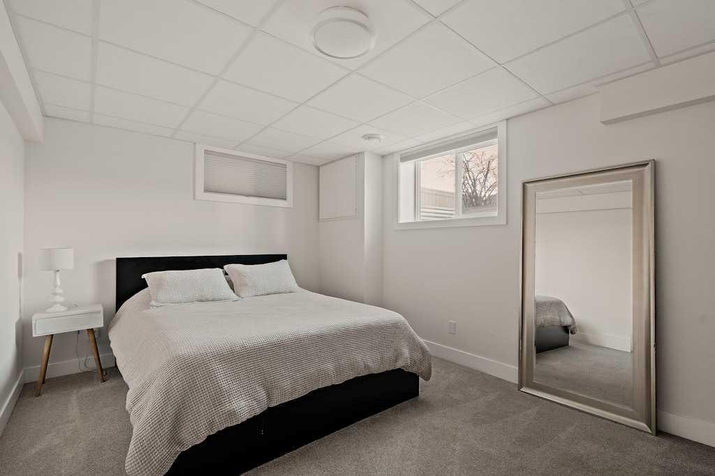 The fully renovated basement offers full ceiling height and excellent additional living space, including a large recreation area ideal for entertaining, a home gym, or games room. You’ll also find an inviting bedroom with an egress window and another beautifully finished full bathroom.