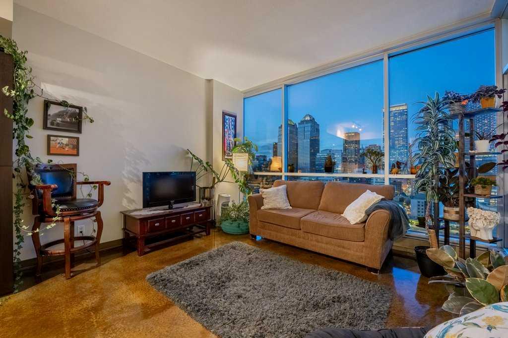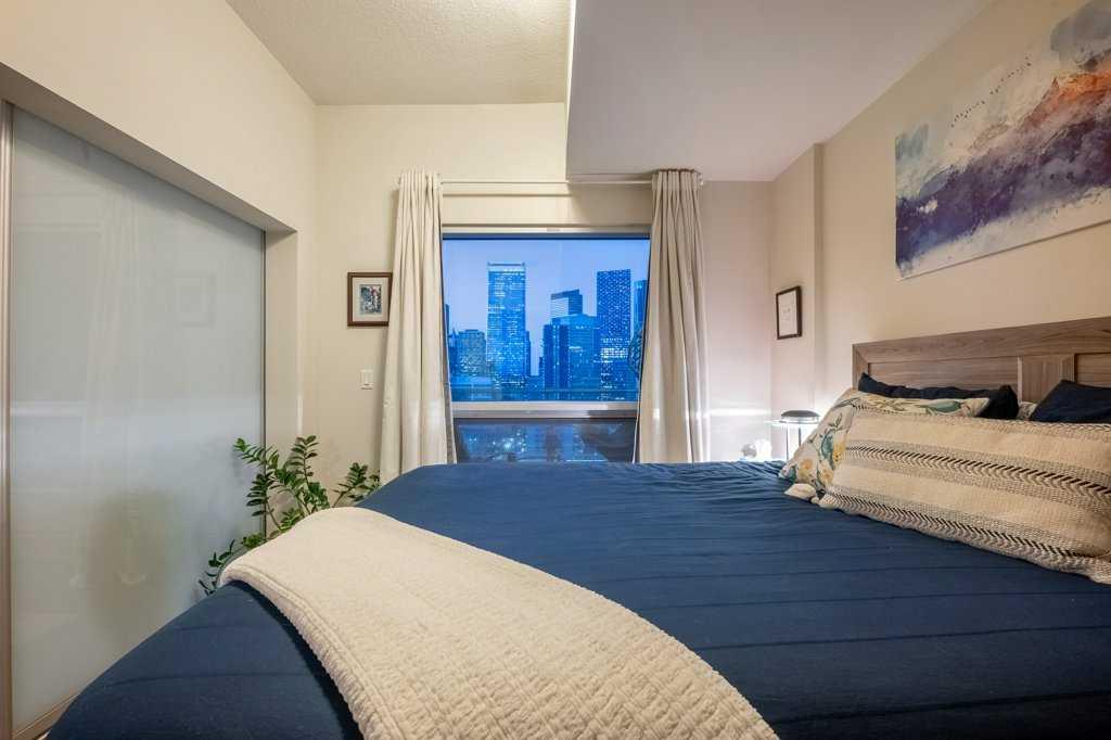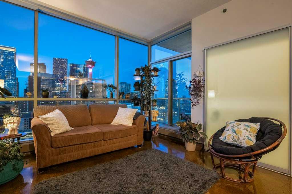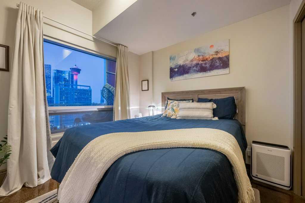 --> OPEN HOUSE: Saturday, March 14 from 1:30 to 3:30pm <-- Seventeen floors above the city, the perspective changes. The noise fades, the skyline sharpens and Calgary stretches out before you like a living postcard. This is Colours, a short-term rental approved complex, where a coveted two bedroom residence delivers a truly panoramic view of the downtown skyline. You know, the kind of million dollar outlook typically reserved for penthouses - yet here you experience it for roughly a third of the price. Stunning floor-to-ceiling north facing windows frame the city like artwork, flooding the space with natural light while showcasing Calgary’s towers, lights and endless urban energy. The freshly polished concrete floors add warmth and modern edge, perfectly complementing the open-concept layout that flows effortlessly between the kitchen, dining and living spaces. The primary bedroom becomes a front-row seat to the skyline, offering a calm retreat with those same sweeping visuals, while the versatile second bedroom easily transforms into a guest room or home office. Step onto your private balcony with natural gas hookup and watch the city shift from golden sunset to sparkling evening lights - a daily reminder that some views never get old. Boasting central A/C, underground parking stall, bike storage and a shared outdoor community garden that brings colour and greenery to the area. And the lifestyle below? It's just as compelling: order top shelf cocktails at Proof, grab a quick bite at First Street Market, Ten Foot Henry, Pat & Betty, St James Corner or Calcutta Cricket Club. Calgary's emerging entertainment district is just moments away which include the new arena, shopping destinations and convention centre. You are also completely walkable to the c-train line, Central Memorial Park, 17th Avenue, downtown office core and the Stampede grounds. Whether you’re a young professional, first-time buyer, investor or someone simply looking to live above it all, Colours ticks all the boxes. The skyline everyone wants - the price few expect.