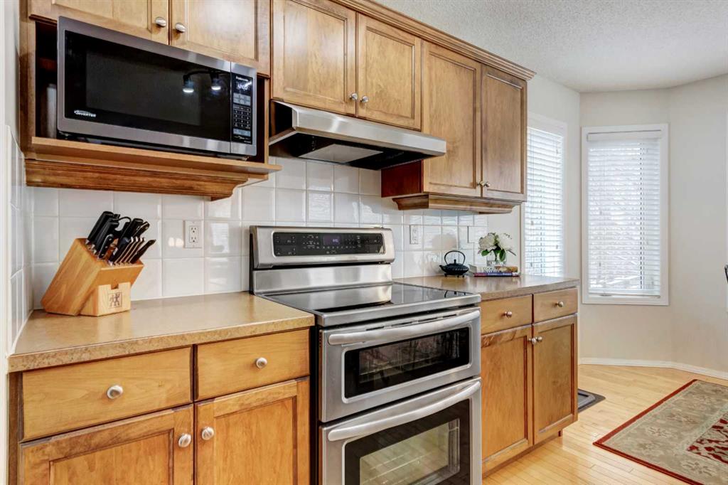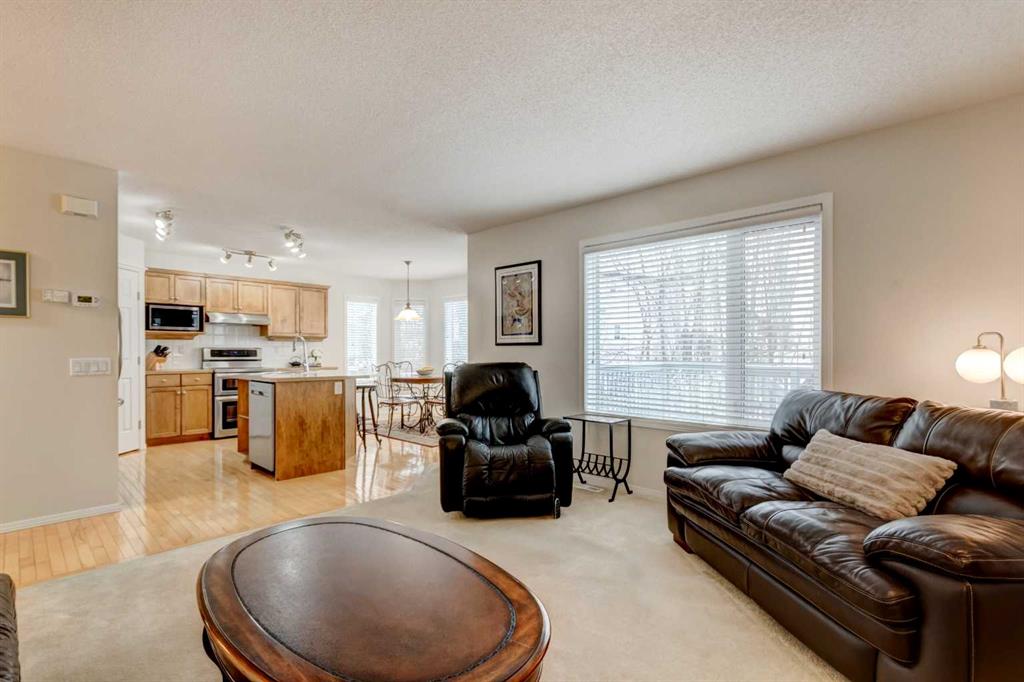 RARE O/S triple car garage | West backyard | Steps to Fish Creek Park. Original Owners. Pride of ownership is evident in this well-maintained home in desirable McKenzie Lake, offering 3 bedrooms plus a main floor den and a bright, functional layout. The front living room and dining room provide an ideal space for hosting family gatherings and entertaining guests. Toward the back of the home, the kitchen offers plenty of maple cabinetry which is carried into all bathrooms as well, upgraded S/S appliances, an island with seating, and a cozy dining nook, all open to the comfortable family room with a gas fireplace—perfect for everyday living and relaxing evenings. The main level also features hardwood flooring and has been freshly painted. Upstairs you will find three generously sized bedrooms along with the convenience of second-floor laundry. The spacious primary bedroom easily accommodates a king-size bed and includes a large ensuite and Walk/in closet. The two additional bedrooms are also well sized, each comfortably fitting queen beds, and share a 4-piece main bathroom. The unspoiled basement is unique with 5 oversized windows offering excellent potential for future development. Step outside to the private west-facing backyard, which includes a large shed, mature trees and a rear deck, ideal for enjoying afternoon and evening sun. The home is located beside a walkway with quick access to the ridge at Fish Creek Park and is close to schools, parks, and everyday amenities. Additional highlights include high-efficiency modulating furnace(2018), 50 gallon HW tank (2019), central A/C(2018), H20 softener(2022), newer taps/toilets (2014), Vacuflo system and NO Poly-B plumbing. A fantastic opportunity in a sought-after community.