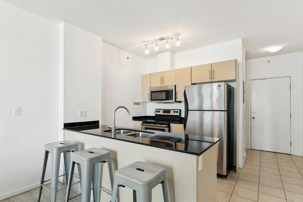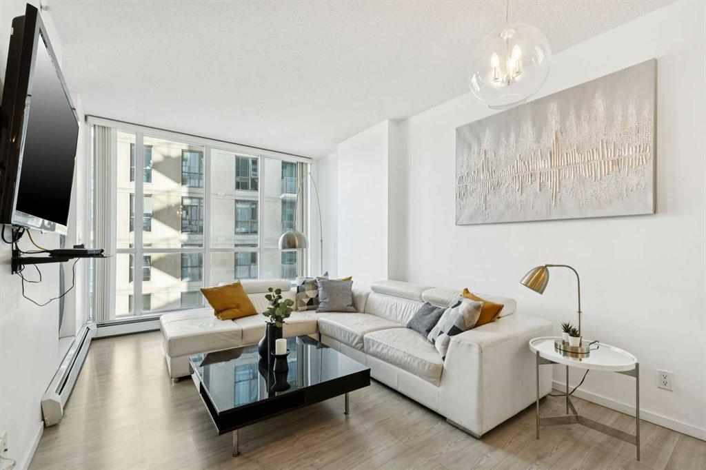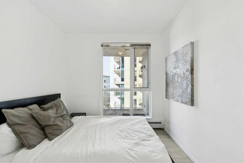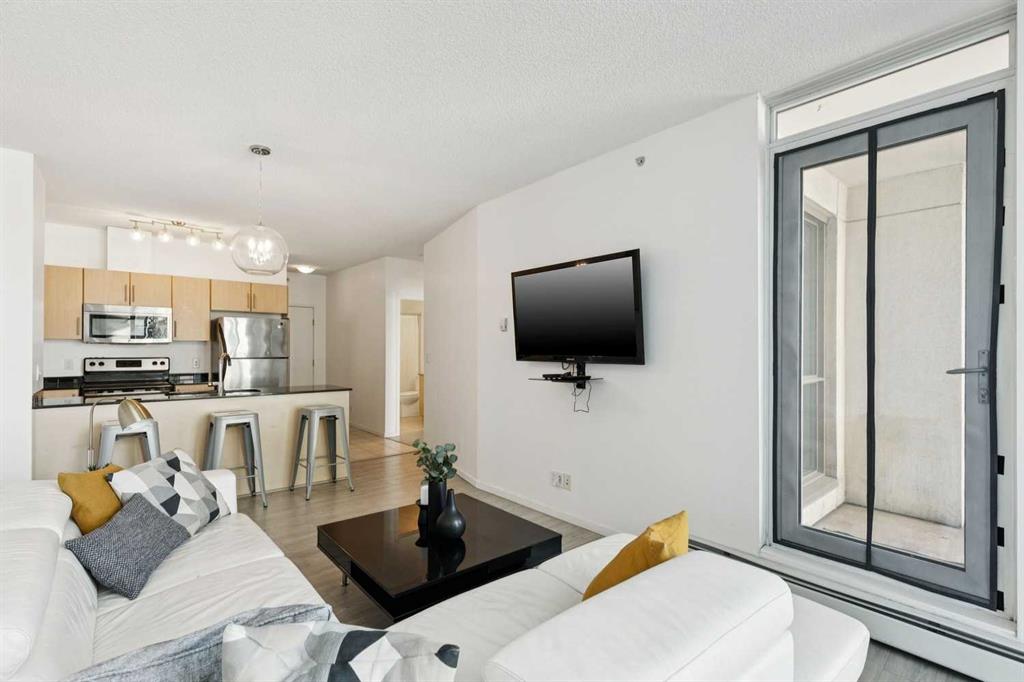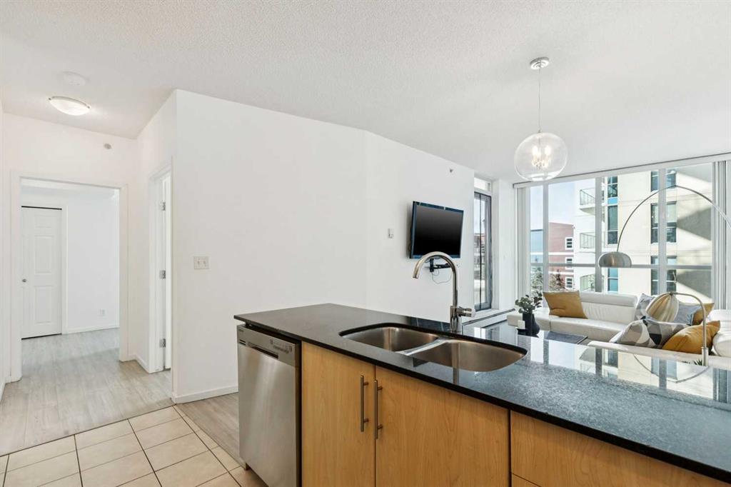 Welcome to urban living in the heart of Calgary’s vibrant East Village. This spacious 2 bedroom, 2 bathroom condo offering 836 sq ft combines modern updates with an unbeatable downtown lifestyle. Recently refreshed with new vinyl plank flooring throughout, the home features a bright open-concept layout designed for comfortable everyday living and easy entertaining. The kitchen overlooks into the dining and living area, creating a functional space filled with natural light. The well-designed floorplan includes two generously sized bedrooms, including a primary suite with its own ensuite, while the second bedroom offers flexibility for guests, a home office, or roommate living. With 836 sq ft, this unit offers more space than many condos in the area, providing both comfort and practicality. Enjoy Calgary’s summers on your private balcony with a small view of the Bow River, the perfect spot to enjoy morning coffee or unwind at the end of the day. Additional features include titled underground parking and access to building amenities including a fully equipped fitness centre. Located in one of Calgary’s most dynamic communities, you’re just steps from the Bow River pathway system, St. Patrick’s Island, restaurants, cafés, and local shops, Calgary Central Library and Bow Valley College. Commuting is made easy with just minutes away, making this an excellent opportunity for professionals, students, or investors.