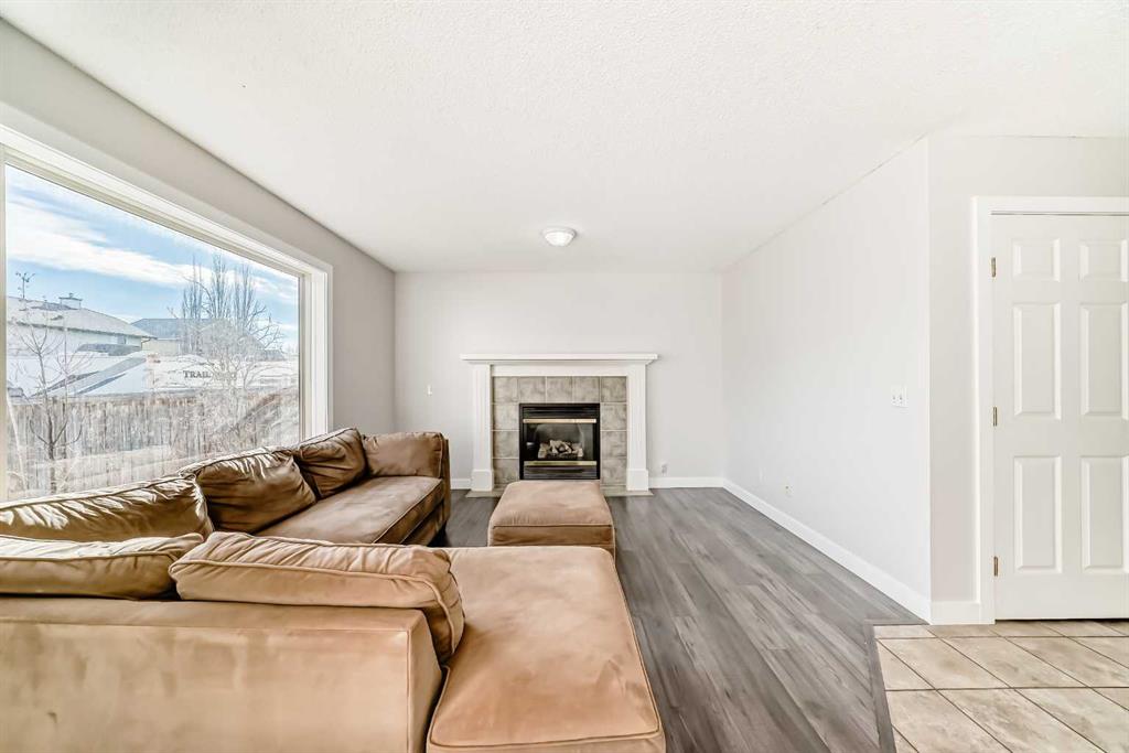 The main floor is designed for function and flow, with a bright kitchen that connects seamlessly to the dining area and living room. The kitchen is well organized and the peninsula counter provides additional prep space, while large windows in the living area bring in natural light and offer views of the backyard. A convenient half bathroom and main floor laundry add practicality to everyday routines.