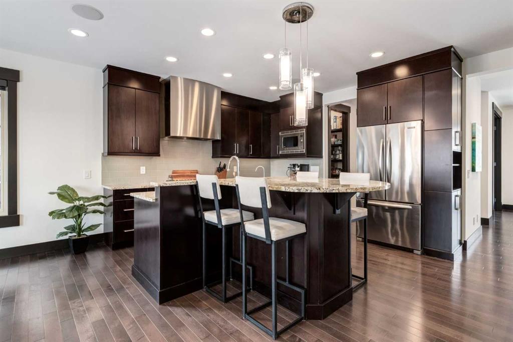 With 3,317 SF of beautifully designed living space, a rare OVERSIZED double garage (28' x 22') and situated on the largest lot on Murmansk Way, this home is sure to impress! This exceptional custom home offers 2,507 SF above grade plus 810 SF in the fully developed basement, delivering a rare combination of scale, craftsmanship, and modern design updates. Built in 2010 with over $100,000 in custom upgrades, the home showcases 10-foot ceilings on the main and upper floors and 9-foot ceilings in the basement, creating an airy, open feel rarely found in comparable homes. The main level is designed for both elevated everyday living and entertaining. Custom built-ins including a dedicated office workspace, front entry bench, and feature fireplace wall add both sophistication and practicality. At the heart of the home is a chef-inspired kitchen featuring a Viking 6-burner dual-fuel range, custom hood fan, Miele dishwasher, and extensive cabinetry, all flowing seamlessly into the dining and living spaces. From here, step outside to the oversized deck overlooking the backyard, perfect for summer gatherings and outdoor living. A mud room with built-ins and powder room complete this space. Upstairs, the home continues to impress with a luxurious primary retreat with walk-in closet and a spa-inspired ensuite featuring in-floor heated flooring, dual vanities, soaker tub and separate shower. A spacious laundry room, 2 additional and generously scaled guestrooms which share a 5 piece bathroom are also found on this level. The finished basement comes complete with a family room, den, 4th bedroom and 4 piece bathroom. A built-in Tannoy speaker system provides integrated sound throughout the main level, primary suite, ensuite, and basement. Recent design improvements include a 2022 interior refresh by Ana Interiors, introducing updated paint, lighting, wallpaper and a beautifully reimagined powder room that elevates the home’s modern aesthetic. Mechanical upgrades include a tankless hot water system and Kinetico water system, while professional furnace, duct, and carpet cleaning was completed in March 2026 and ensures the home is move-in ready and demonstrates continued pride of ownership. Within walking distance to several playgrounds, minutes to an array of private and public schools, short driving/cycling distance to Marda Loop, North Glenmore Park and Sandy Beach. Book your showing today!