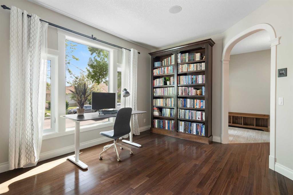 A spacious foyer greets you as you enter and leads to a bright front den that works beautifully as a home office, reading room, or quiet retreat. The formal dining room is ideal for hosting gatherings, while the well appointed kitchen features full height cabinetry, granite countertops, stainless steel appliances, a walk in pantry, and a sunny breakfast nook. The adjoining living room is warm and inviting with custom built ins and a gas fireplace.