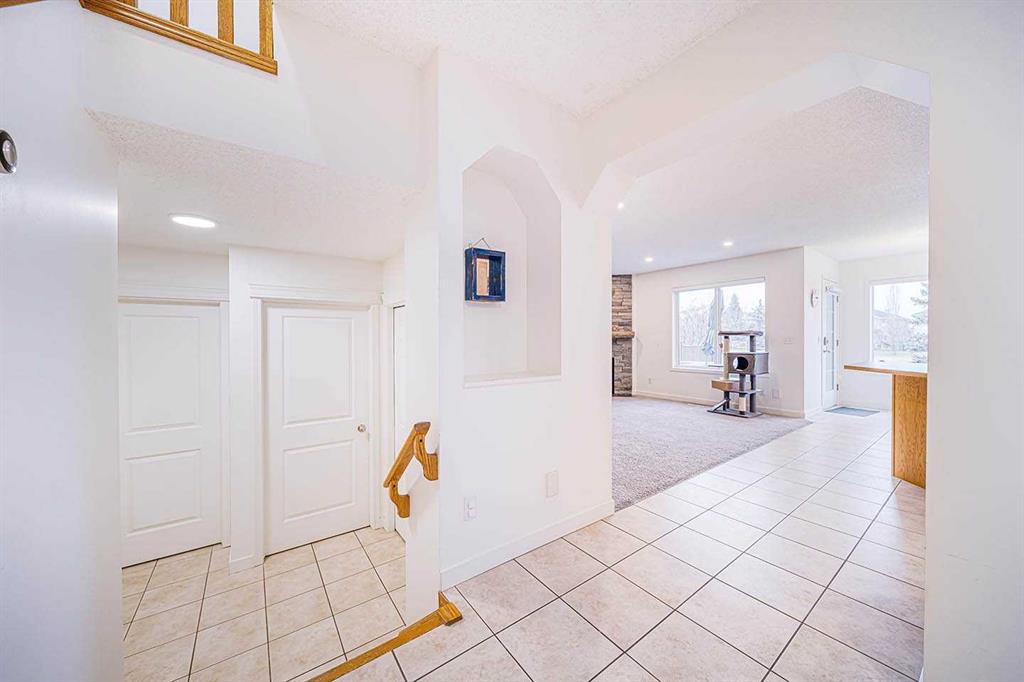 The home has seen valuable updates including a newer hot water tank, a new furnace(2025) with humidifier and UV air purification (2025), new dishwasher, microwave, and kitchen faucet (2025), automatic blinds on the main floor and primary ensuite, CCTV system, a newly installed water softener, replaced roof and siding, and air conditioning for added summer comfort. Outside, a convenient shed provides extra storage for tools and equipment, and the attached double garage completes this practical family home.
