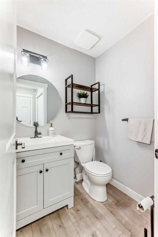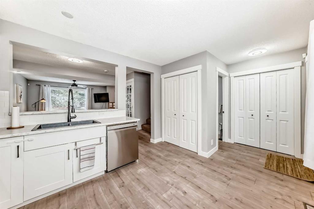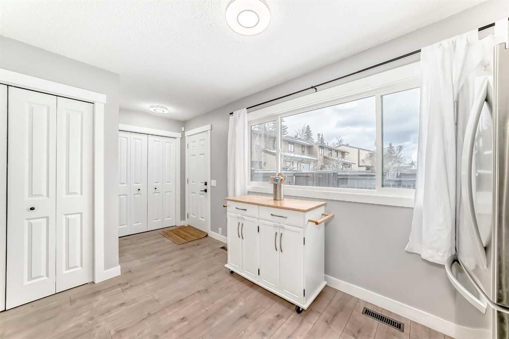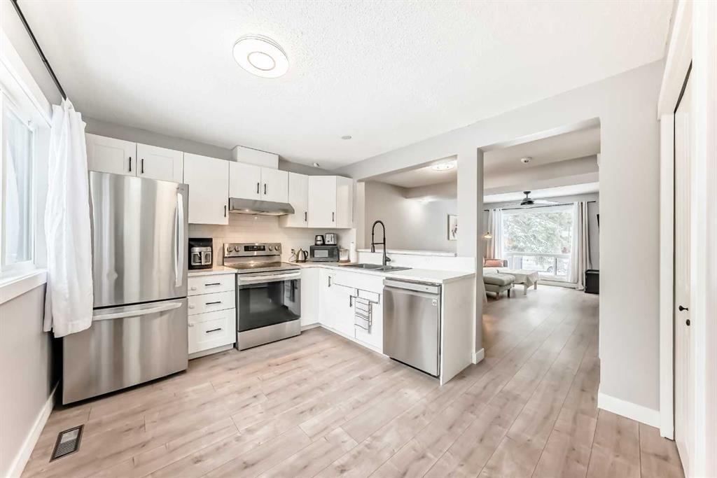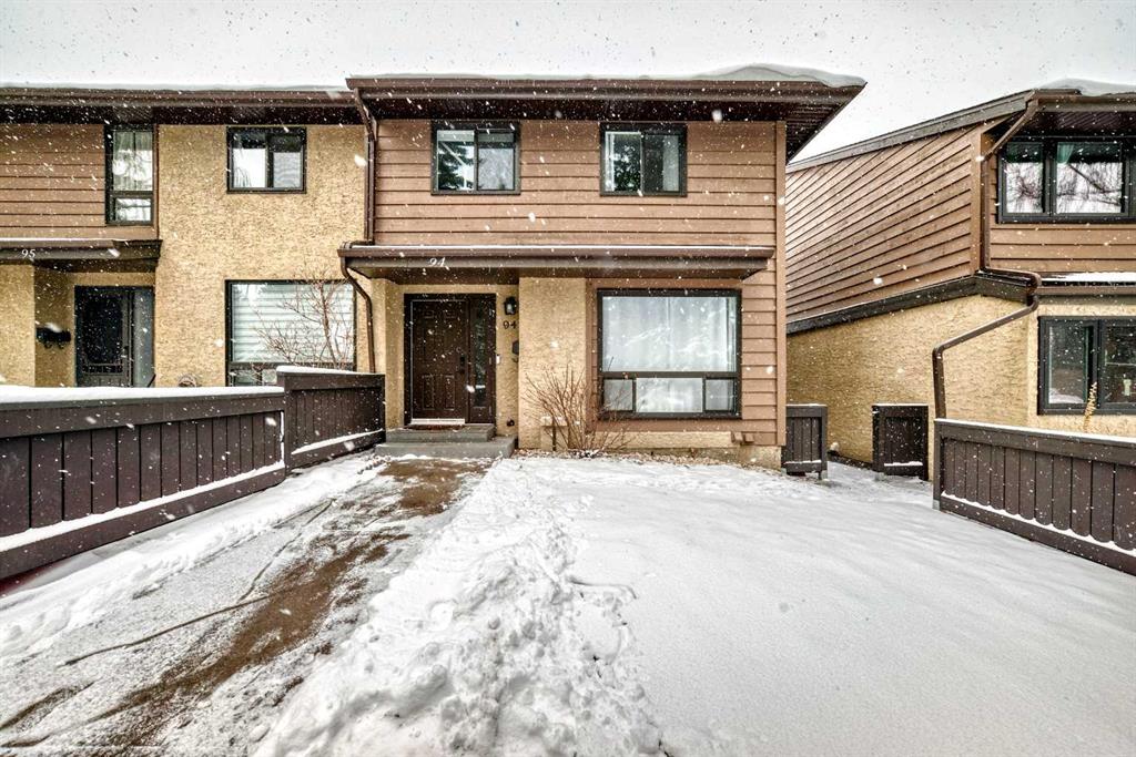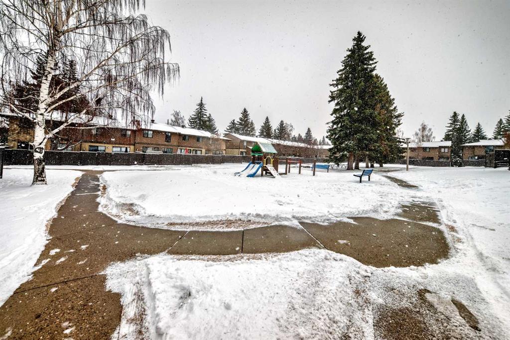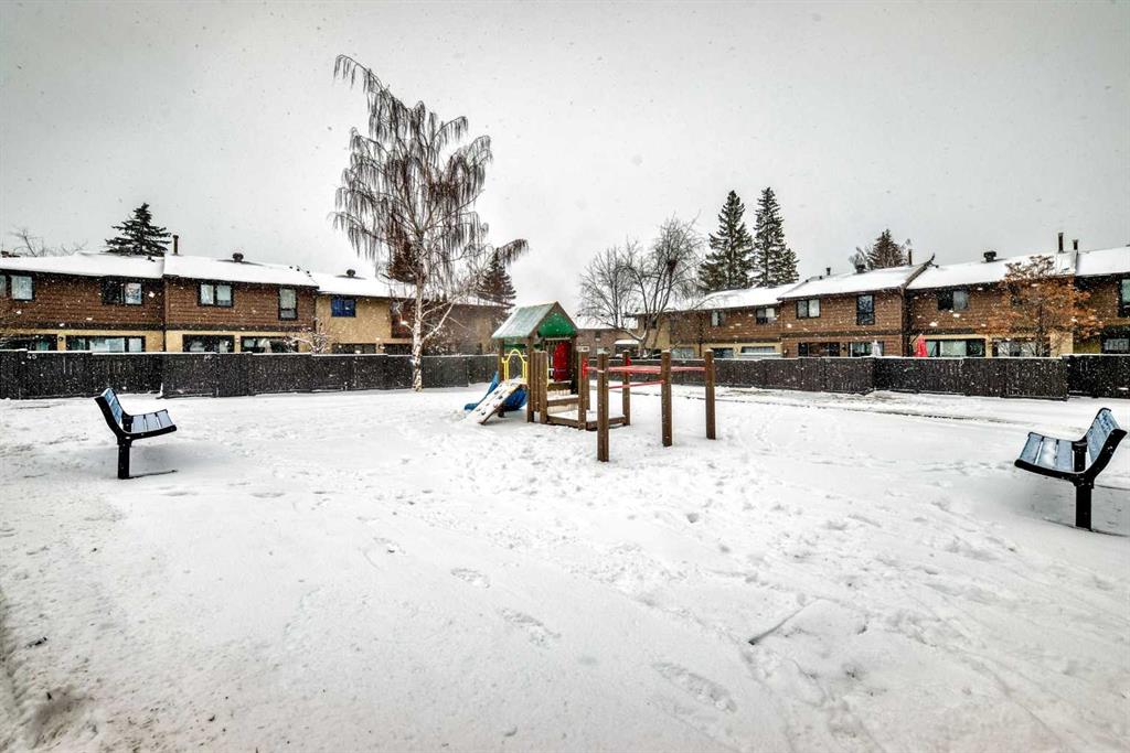 Perfectly situated in the popular and well managed Oakmoor townhomes, and in one of the best locations in the complex, this renovated end unit townhouse offers several standout features including a private driveway right out front, a private fenced backyard that is perfect for entertaining, relaxing, or pets (with board approval), and an ideal location backing directly onto the large treed central courtyard with walking paths and a playground! Thoughtfully updated from top to bottom with improvements that include a high efficiency furnace, hot water tank, vinyl windows and more. The bright main floor, bathed in natural light from large south facing windows, features a spacious front living room, adjoining dining area, and a stylish kitchen with crisp white cabinetry, stainless steel appliances and a lovely view over the courtyard park. A convenient two piece bathroom completes the main level. Upstairs is host to three bedrooms including a generous primary featuring a walk-in closet, and a four piece main bathroom. The fully developed lower level provides additional living space, laundry (with a new LG Washtower machine!), plenty of storage and another two piece bathroom. Enjoy the convenience of parking for two vehicles on your private driveway located directly outside the front door, with ample visitor and street parking nearby. This well managed complex is close to schools, parks, shopping and transit, and offers easy access to Stoney Trail for a quick commute around the city and to the nearby Taza Park shopping district. Call your favorite Realtor to book your private showing today!