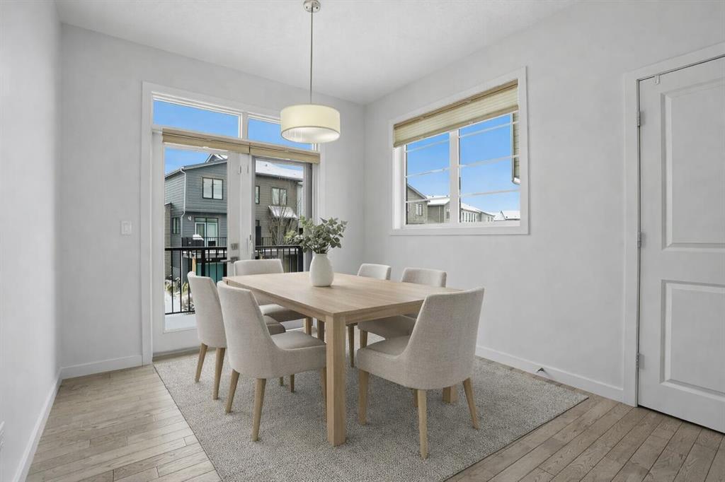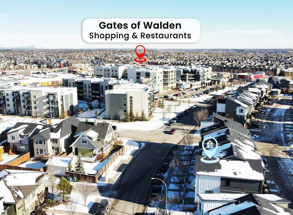 Welcome to this spacious end-unit townhouse in the desirable community of Walden, located just steps from shopping, restaurants, transit, parks, and pathways. This home features a double-attached tandem garage with a driveway, plus ample street parking nearby. Step inside to the bright main floor with hardwood flooring and custom blinds throughout. The dining area is filled with natural light from large windows and a glass door leading to your private balcony with BBQ gas line. The kitchen features stainless steel appliances, quartz countertops, and a large island with breakfast bar, perfect for entertaining. The west-facing living room is flooded with natural light, creating a warm and inviting space to relax. A convenient 2-piece bathroom completes this level. Upstairs, you’ll find three bedrooms with blackout blinds, including a primary bedroom with a walk-in closet and private ensuite. One of the secondary bedrooms also features its own walk-in closet. This level also includes a second full bathroom and convenient laundry area.The double attached tandem garage is fully finished with drywall, paint, textured ceilings, and two windows, offering excellent additional storage space. The Edison is a well-maintained complex in the heart of Walden, featuring beautifully maintained landscaping and convenient access to nearby amenities. Book your showing today!
