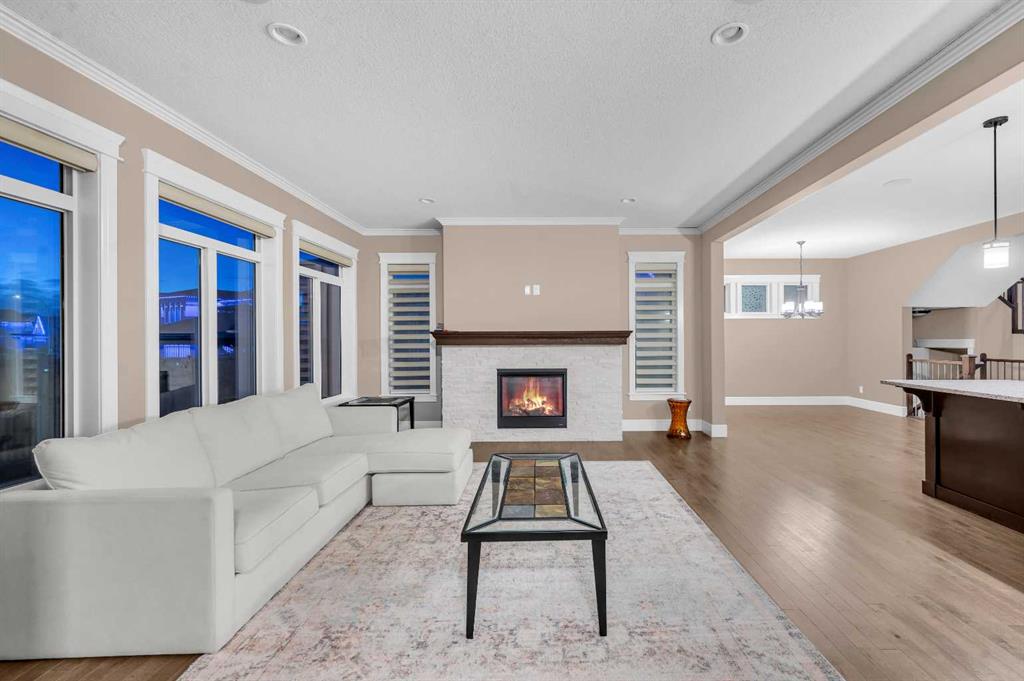 Welcome to this stunning family home in the heart of Mahogany! Beautifully designed and meticulously maintained, this property offers an open-concept main floor with hardwood flooring, a spacious kitchen featuring granite countertops, a large island, pantry, garburator, and stainless-steel appliances including a stove, oven, fridge, dishwasher, and microwave. The main level also includes a dining area, bright living space, 2-piece bath, laundry room, mudroom, and a triple car attached front garage. Upstairs, enjoy a large family room with elegant tray ceilings, three generous bedrooms, a 5-piece main bath, upper laundry, and a luxurious primary suite with a walk-in closet and a spa-inspired 5-piece ensuite complete with heated floors. The fully finished basement provides even more space with a rec room, bedroom, office/library, 4-piece bath, utility room, and walk-in closet. Outside features low-maintenance landscaping with artificial turf and exposed aggregate in both the front and back yards, a 3-car driveway, and electric outlets under the back patio—perfect for outdoor entertaining. Central A/C completes this exceptional home that combines luxury, comfort, and functionality—ready for your family to move in and enjoy!