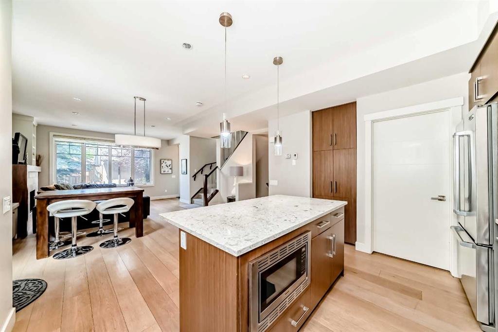 Step outside to enjoy a beautifully landscaped private backyard, ideal for summer barbecues and relaxing evenings. Additional highlights include high ceilings, upper-level laundry, detached garage parking, and a prime inner-city location close to downtown, river pathways, parks, shopping, and top schools including SAIT and the University of Calgary.