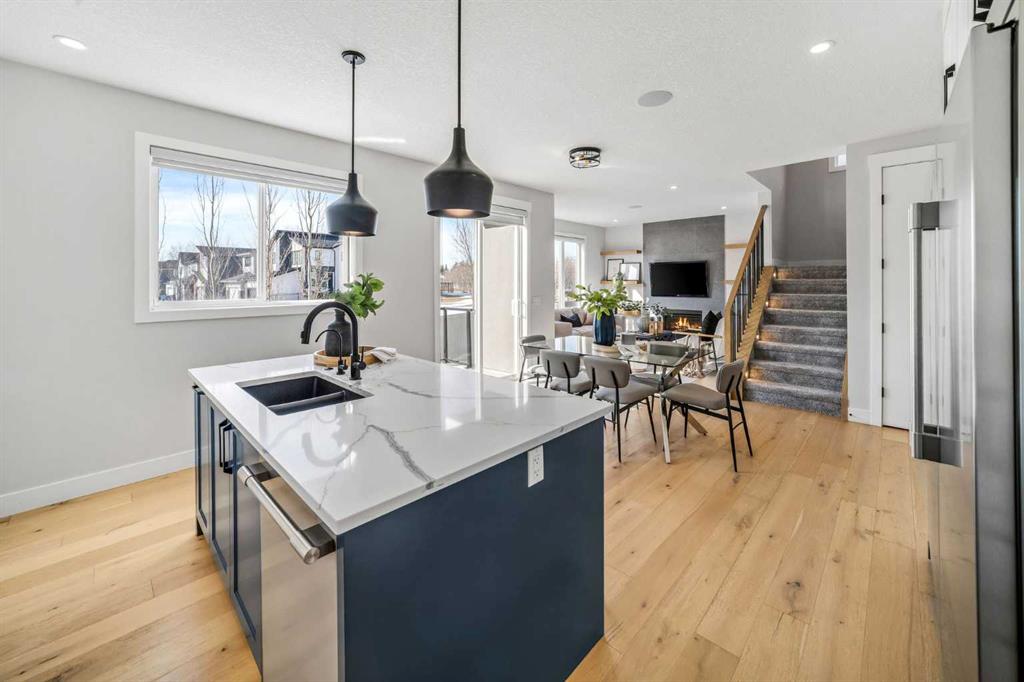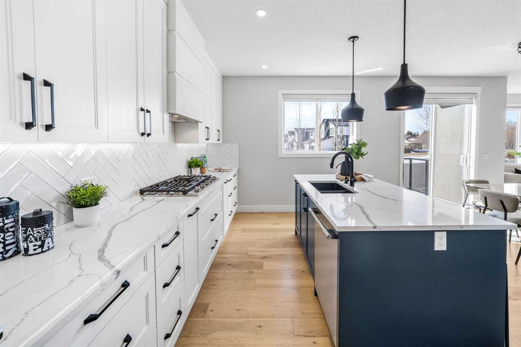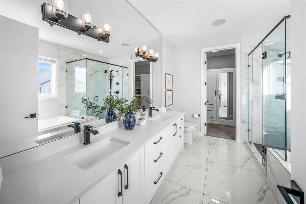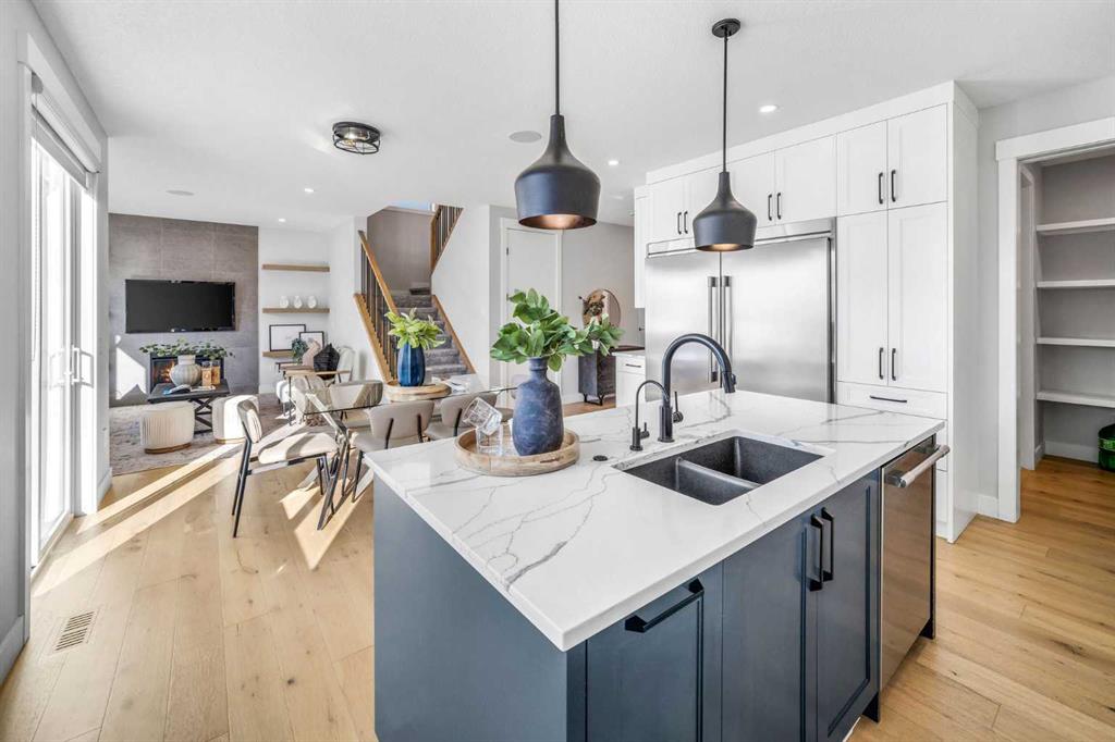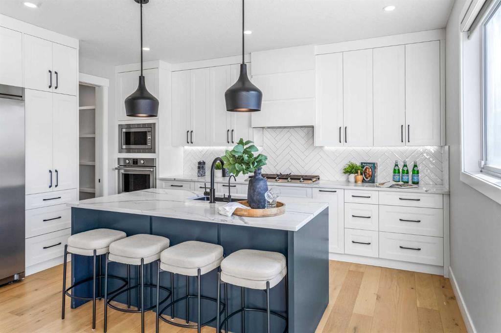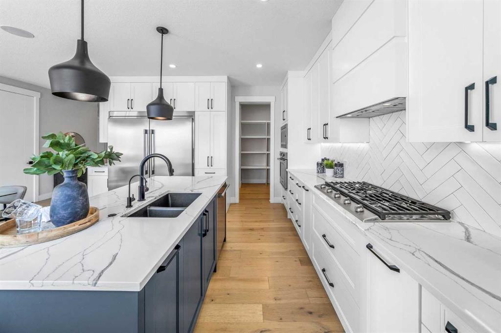OPEN HOUSE: SAT & SUN 1-3 PM. What does a great family home actually look like? Five bedrooms. Three and a half bathrooms. Over 3,200 sq. ft. A park right behind your backyard. A basement with its own entrance. And a kitchen that makes you want to cook. Set on a quiet cul-de-sac in West Springs, this 2022 home backs onto a park & green space, with a west-facing backyard that captures Calgary's best evening light. The separate side entrance to the fully finished basement gives the flexibility every modern family eventually needs — whether that means space for teenagers, room for extended family, or simply a home that never runs out of room. The main floor flows effortlessly between a chef-inspired kitchen and a warm, inviting living room anchored by a full-height gas fireplace. The kitchen is built for the way people actually cook — a gas cooktop, full-size refrigerator, custom soft-close cabinetry, quartz countertops, under-cabinet lighting, and a reverse osmosis water filtration system under the sink. A convenient walk-through pantry with custom built-ins keeps everything organized and within reach, flowing seamlessly into a custom mudroom with built-in bench, paneling, and hooks. A private office tucked behind double glass doors rounds out a main floor that is as functional as it is beautiful. Upstairs, 3 generous bedrooms each have walk-in closets, the bonus room offers a true second gathering space, and the primary suite — with its vaulted ceiling, soaker tub, custom shower, and in-floor heated ensuite — is the kind of retreat you will actually use. The lower level is fully finished with 2 additional bedrooms, a full bathroom with custom shower base, a large rec room with wet bar and custom entertainment unit, and a soundproofed ceiling — a self-contained space that works as hard as the rest of the home. A dedicated laundry rough-in touch of independence to the lower level. Thoughtful upgrades throughout: central A/C, 2 high-efficiency furnaces, 9 ft. ceilings on all floors, 8 ft. doors, engineered hardwood, upgraded carpet with 8-ply underlay, 2 Nest thermostats, a 5-camera security system, EV charging outlet, heated and insulated garage, vinyl deck with BBQ gas line and glass railing, and more. And then there is the community. West Springs consistently ranks among Calgary's most desirable places to call home and it is easy to see why. Webber Academy and Rundle College are minutes away, making this an exceptional location for families. The neighbourhood is surrounded by parks, pathways, and green space, with the Westside Recreation Centre close at hand. Amenities on 85th Street & Aspen Landing Shopping Centre is just a short drive away, offering everyday conveniences, boutique shops, and some of Calgary's favourite restaurants. Add in quick access to the mountains, Canada Olympic Park, and the best of SW Calgary, and West Springs is not just a neighbourhood — it is a lifestyle. Homes like this do not come along often. Do not miss your chance to make it yours.