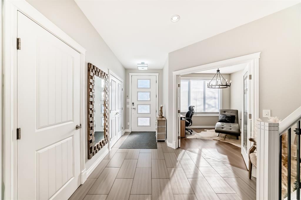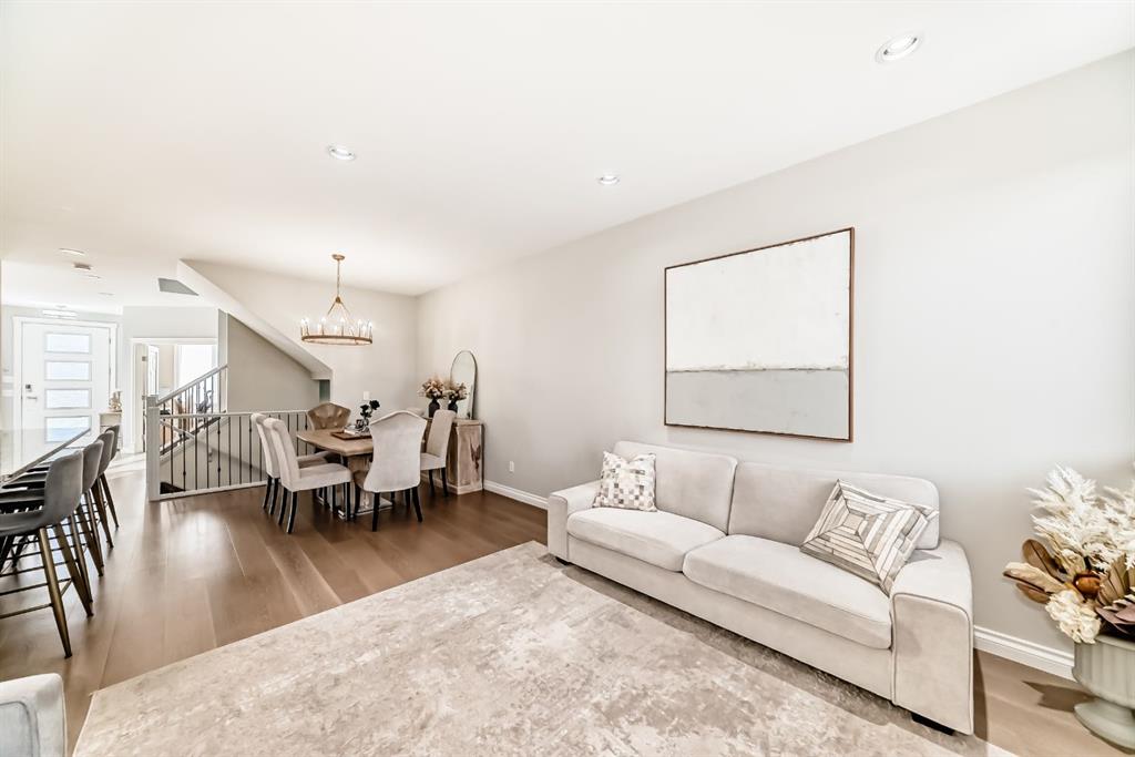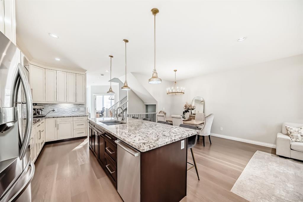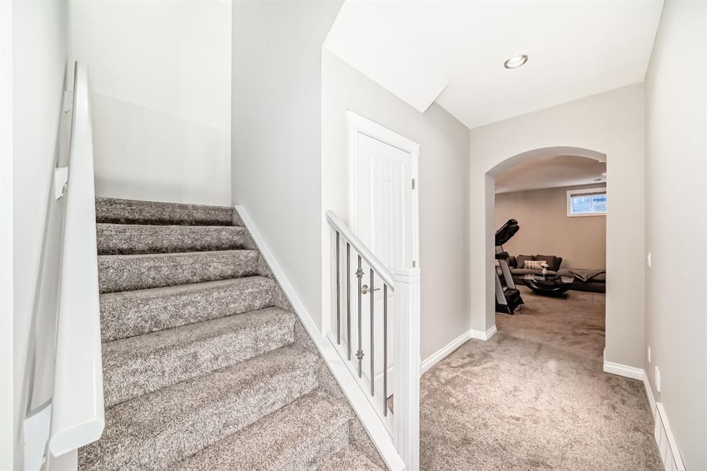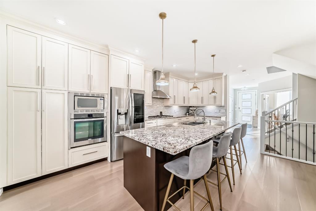 Stunning 2014 custom-built semi-detached home in the heart of trendy Bowness. A short stroll to Bowness Park, Bow River pathways, shops, restaurants, and cafés, with quick access to COP, downtown and the mountains, this home combines modern luxury with a vibrant community lifestyle. This home has a bright open floor plan with 4 bedrooms, 3.5 baths, office, fully developed basement and double garage. Boasting 2,828.9 sq ft of total developed living space, including 1,999.6 sq ft above grade, the main floor features 9’ ceilings, engineered hardwood, a chef’s kitchen with granite counters, large island with breakfast bar, pantry, and premium stainless steel appliances including a Café 5-burner gas cooktop and ThinQ refrigerator with glass beverage door, plus a spacious dining area and large living room with gas fireplace. A mudroom with built-in bench and cabinets opens to the fenced backyard with lawn area and a concrete patio with pergola, this home is enhanced by oversized custom front and back doors with windows for additional sunlight. Upstairs, the primary suite includes a walk-in closet and a luxurious, spa-inspired 5-piece ensuite with jet soak tub, toilet room, double vanity, and separate shower, upper level also has two additional bedrooms, a computer nook, a 4-piece bathroom, and upper-floor laundry room. The basement offers 9’ ceilings, a large bedroom with walk-in closet, full bathroom, huge family room with gas fireplace and a wet bar for entertaining as well as plenty of storage. Additional features include: Central A/C, vacuum system and attachments, custom blinds, enlarged laundry room with sink, upgraded lighting fixtures throughout, Hue smart lighting in kitchen, bedrooms, and hallways, along with a double detached garage with shelving. A rare opportunity in a vibrant, walkable community.