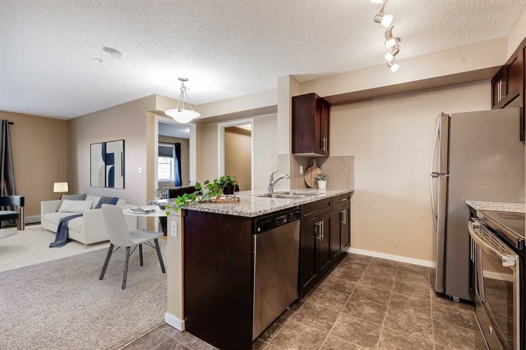 This well-appointed main floor condo offers over 950 square feet of thoughtfully designed living space, featuring three bedrooms and two full bathrooms. A spacious entryway welcomes you in, leading to an open-concept kitchen, dining, and living area that balances function and comfort. The kitchen stands out with granite countertops, stainless steel appliances, real wood cabinetry with soft-close doors, and a convenient breakfast bar for casual meals or entertaining. The living room provides a comfortable place to relax, with direct access to a large patio overlooking a quiet green space, an ideal setting to enjoy some fresh air or unwind at the end of the day. Positioned with neighbors on only one side and located close to the elevator, the unit offers a more private atmosphere along with easy access to the heated underground parkade. The primary bedroom is generously sized and features a walk-through closet leading to a private three-piece ensuite complete with an oversized shower. Two additional rooms offer flexibility for family, guests, or a dedicated home office. A full four-piece bathroom serves the secondary spaces, while the in-suite laundry and storage room add everyday practicality. This home includes a titled underground parking stall in a heated parkade, along with secure bicycle storage. Pet owners will appreciate that cats and dogs up to 15 kg are permitted with board approval. Situated in the established and growing community of Legacy, this location offers a strong balance of natural surroundings and urban convenience. Residents enjoy access to extensive walking paths, parks, playgrounds, and nearby environmental reserves, along with a variety of shops, restaurants, fitness options, and essential services just a short distance away. The area is also home to All Saints High School and a brand-new K–9 school opening in 2026, making it a practical choice for a range of lifestyles. Commuting is straightforward with quick connections to major routes including Macleod Trail and Stoney Trail, while public transit options are close by. Nearby destinations such as Fish Creek Park, Spruce Meadows, and the Bow River add to the appeal for those who enjoy outdoor activities, with the mountains within reasonable reach for weekend trips. Take advantage of your opportunity to see this incredible property in person, book your showing today! Be sure to check out the floor plans and 3D tour for a closer look before your visit.