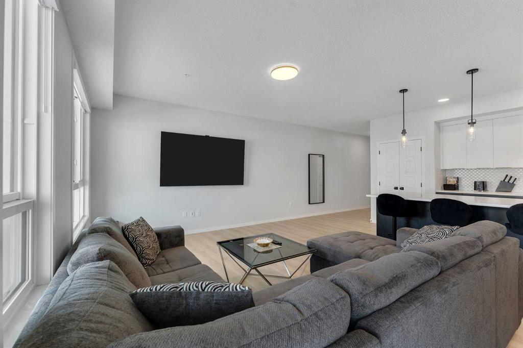 Durable luxury vinyl tile flooring with sound-reducing membrane adds both comfort and style to the living areas. The primary bedroom offers a functional retreat with a large walk-in closet and a private ensuite bathroom.