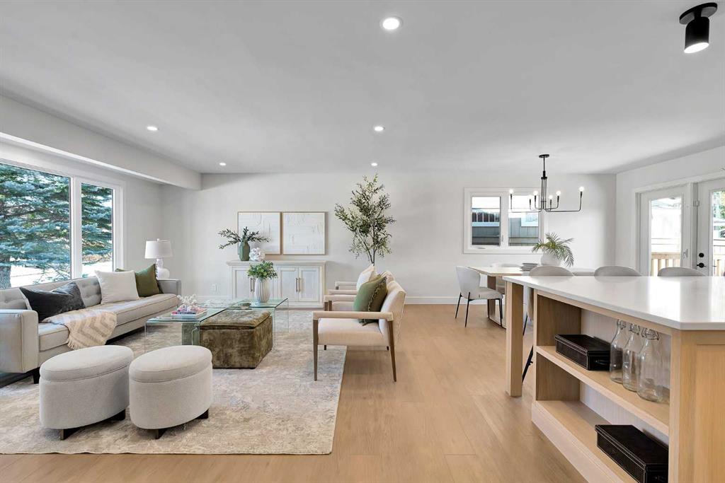 stunning main floor through full-height living room windows, while wide-plank floors anchor the
