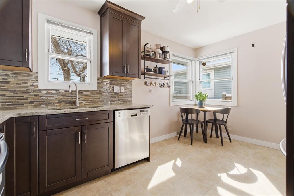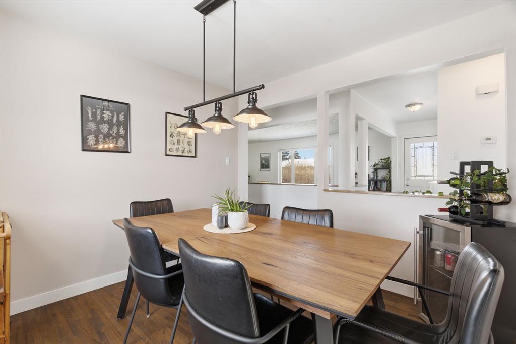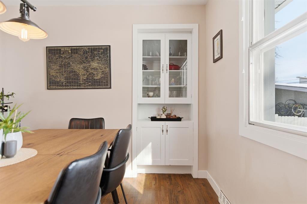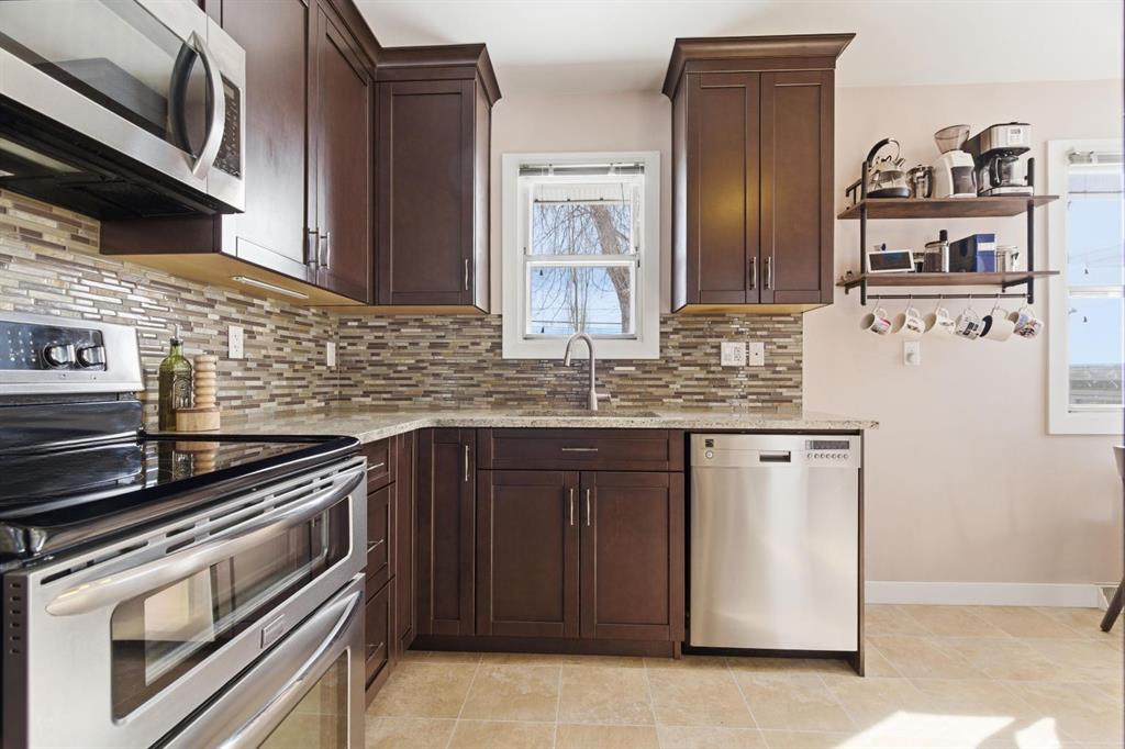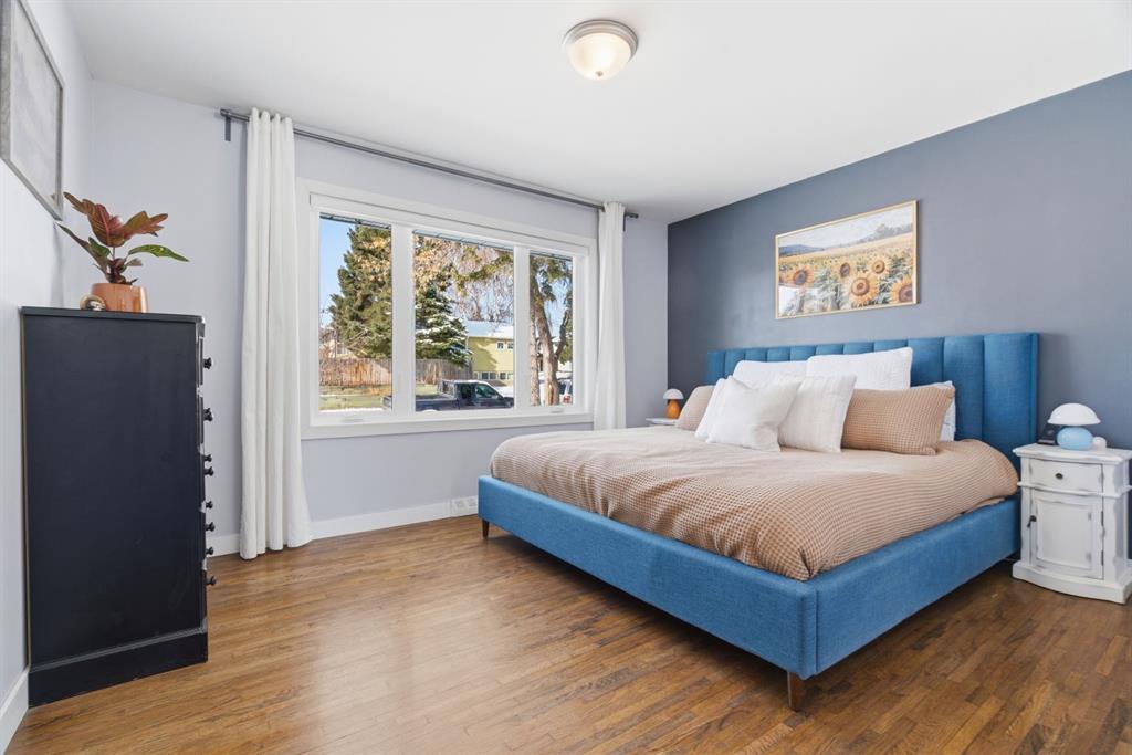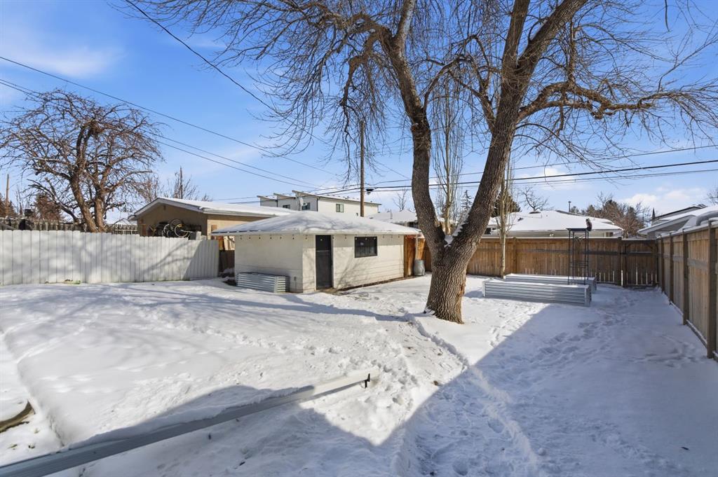 Situated on an expansive 60’ wide lot on a quiet street inner city this beautifully updated bungalow features 3 beds, and 2 baths, along with an oversized single detached garage. As you approach you will notice the refreshed curb appeal with new vinyl siding and windows (2017). Step inside to find stunning hardwood floors and abundant natural light that fills the space. The spacious living room located at the front of the home provides the perfect retreat to relax and unwind. The kitchen is a focal point with rich expresso shaker cabinets reaching to the ceilings, modern stainless-steel appliances, elegant granite counters, a stylish mosaic tile backsplash, and a pantry for additional storage. The kitchen sink looks onto the sunny yard. This seamlessly connects to the breakfast nook surrounded by windows. Adjacent to the kitchen is the large dining room, showcasing a designer light fixture and a charming built-in storage unit, ideal for family dinners or entertaining guests. Two generous sized bedrooms and a well appointed 4 pc main bath complete this level. The fully developed lower level boasts a 3rd bedroom, 4 pc bath, significant rec area and an office space. Providing plenty of room for work or play. Step outside to enjoy a serene backyard surrounded by mature trees and plenty of garden boxes. Located within an established, amenity-rich community, walking distance to schools, parks, the outdoor rink, tennis courts, along with easy access to downtown transit via the c-train. Enjoy the proximity to West Hills Towne Centre and Signal Hill Centre with seemingly infinite shopping, restaurant and entertainment options as well as West Brook Mall and Optimist Athletic Park. View the virtual tour or call your favourite Realtor to schedule a private showing today.