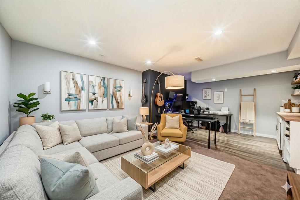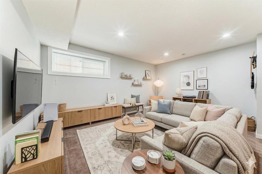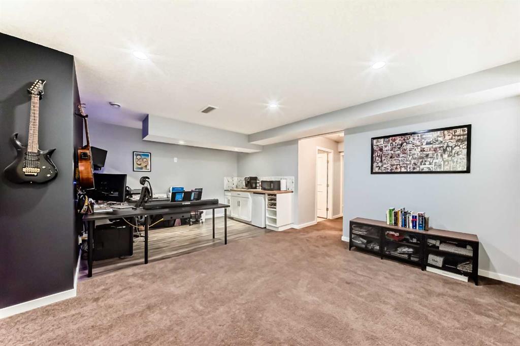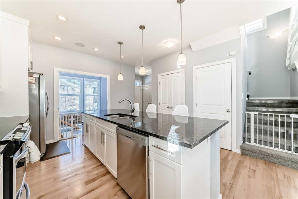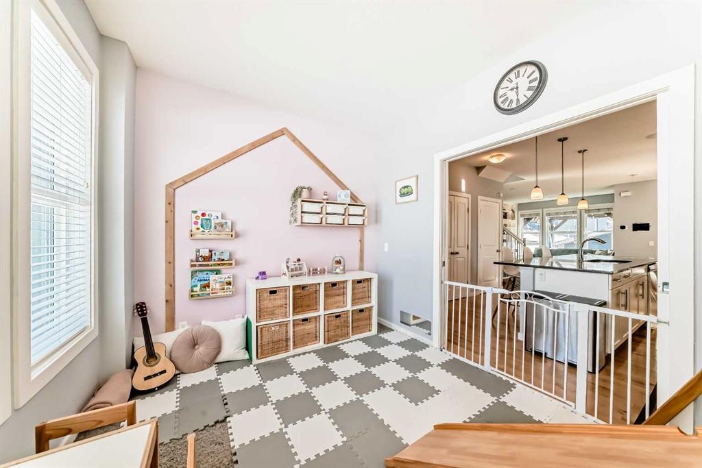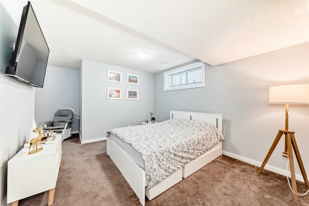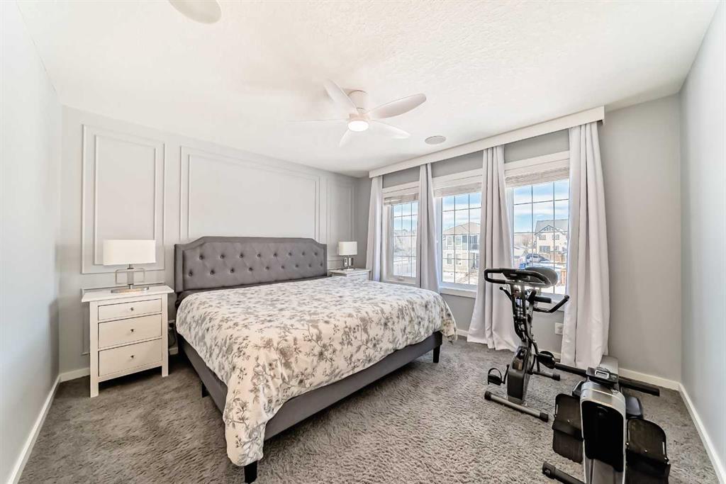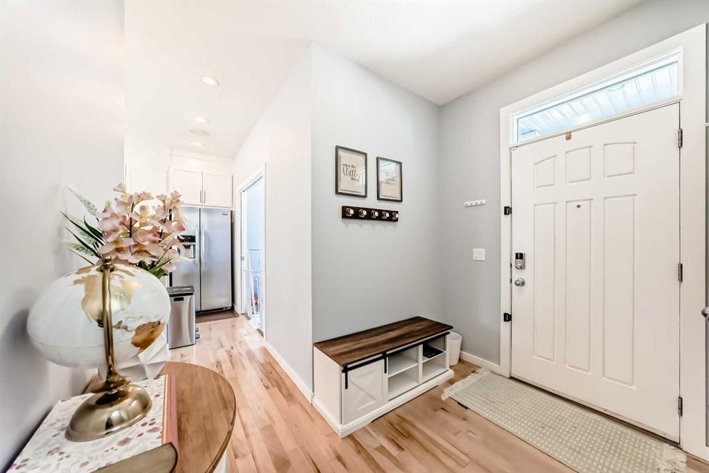 Experience lake community living in this immaculate, fully finished two-storey home located in Mahogany, Calgary’s premier award-winning community. This beautifully maintained detached home offers four bedrooms, 3.5 bathrooms, and a fully finished basement. The open-concept main floor features elegant hardwood flooring, a cozy gas fireplace with built-in shelving, surround sound, a bright office/den, and a modern kitchen. The kitchen showcases floor-to-ceiling white cabinetry, granite countertops, and a large island perfect for entertaining. Upstairs, the primary suite serves as a relaxing retreat with a spa-inspired five-piece ensuite and a large soaker tub. Two additional bedrooms, a full bathroom, and the convenience of upper-level laundry complete this floor.