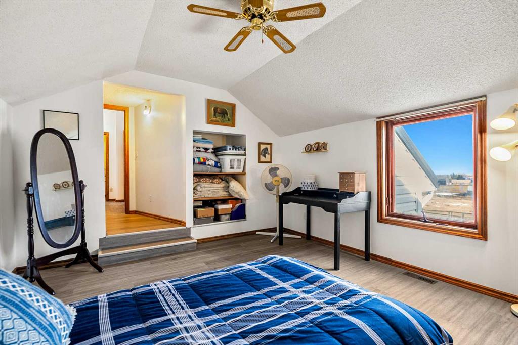 The home includes four huge bedrooms, with three upstairs, including the primary suite with an ensuite, room for a sitting area, yoga, his and hers beds, or build a walk-in closet and enjoy the stunning ceilings this room offers. The main floor has a full bath, plus one bedroom, a full bathroom, and a den on the main floor. The home, with its 3 full bathrooms and generous living spaces throughout, still has a basement that you can add your touch to and build what you need.
