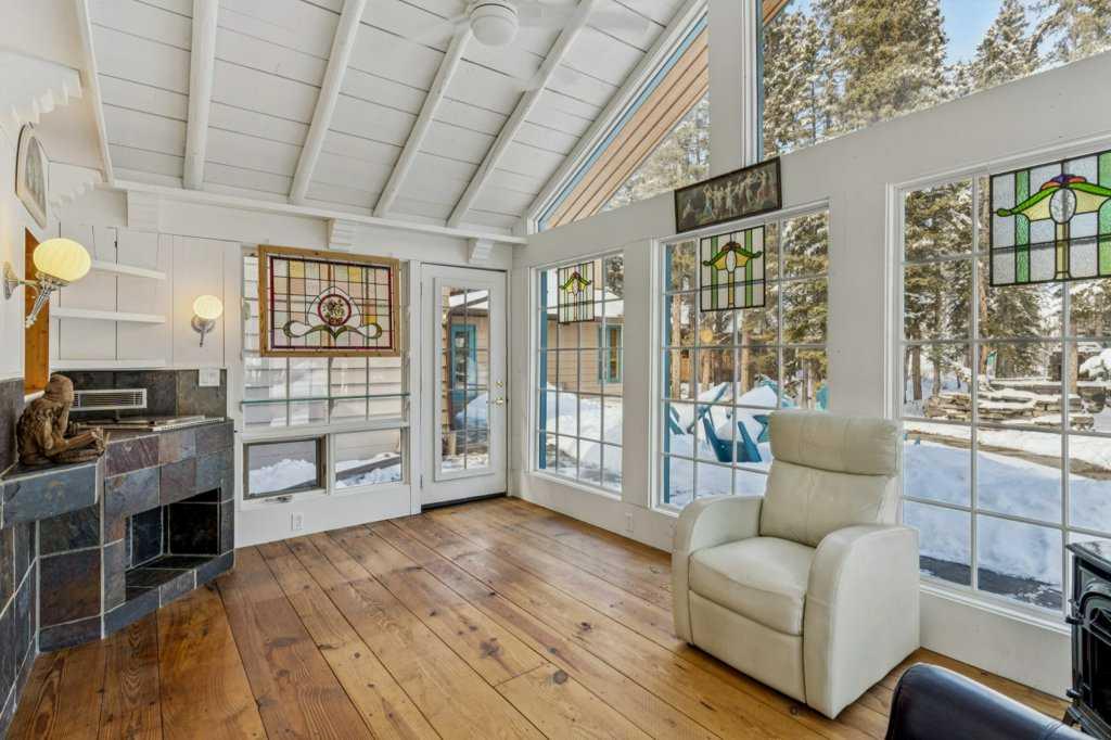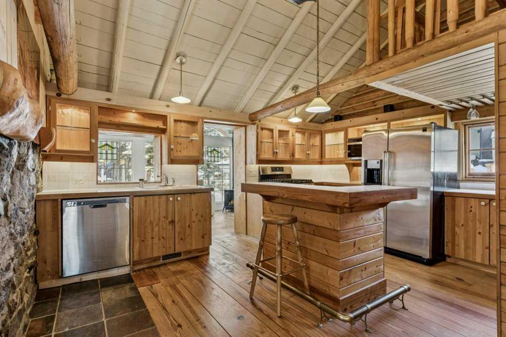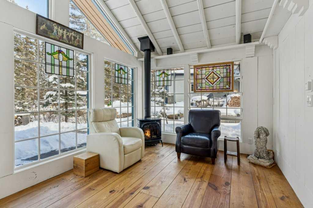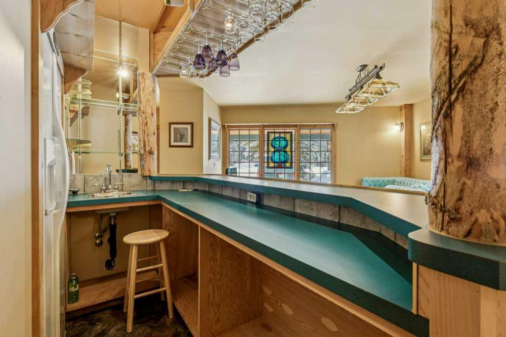 There are a few things that quintessentially define the hamlet of Bragg Creek. The sleepy small town feel. The connection to nature. And the uniqueness of the homes and architecture, hidden in the tees, continually surprising to discover. This incredible home started life as a one-room log cabin in 1950, and has been extensively renovated and added on to over the years, but retains its character and history. Entering the original cabin, you note the huge stone fireplace, the kitchen with updated appliances, 3-piece bath, and don’t forget to look up- there is a sleeping loft that would be appealing to any kid. Beyond the kitchen is an absolutely incredible sunroom with bbq grill and gas fireplace, which overlooks the backyard. Continuing on to the addition, you pass a large bedroom with it’s own patio access, laundry, and full bath, arriving in a large rec room. This is the perfect place to entertain guests, with a full bar! Toward the back of the addition, there is a stunning primary suite, a gigantic room with its own fireplace, patio access, walk-in closet, and stunning 5 piece en-suite. There is also a connected flex room that could be another bedroom, office, gym, or whatever you need! The courtyard of the home is a beautiful centrepiece, with a fire-pit to gather around, and it also has an stone water feature and outdoor bbq. The backyard also features a small heated cabin with full bath- a perfect guest house, craft studio, or Air BnB. The 0.7 acre lot, with it's wilderness setting, gets lots of animal visitors, feels remote, yet is only a 5 minute walk to the shops and restaurants of Bragg Creek, or to the Elbow River. This is a jewel, even among other unique homes, and must be seen! Explore this home using our 3-D tour, and then come experience it in person.