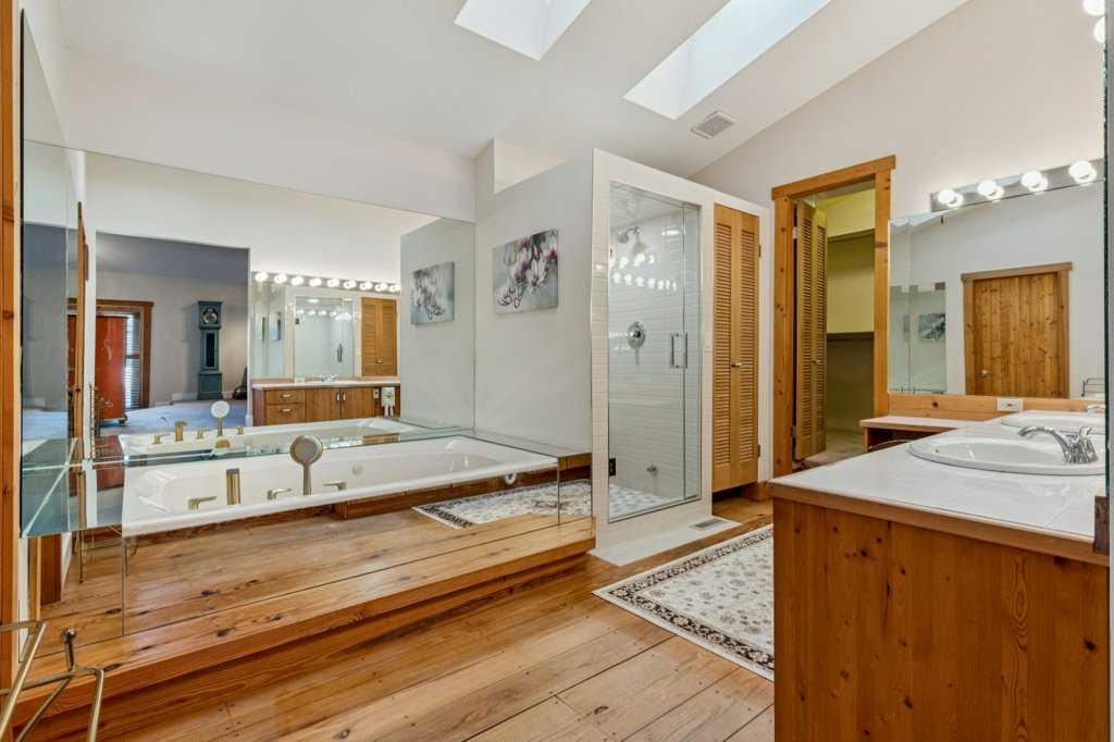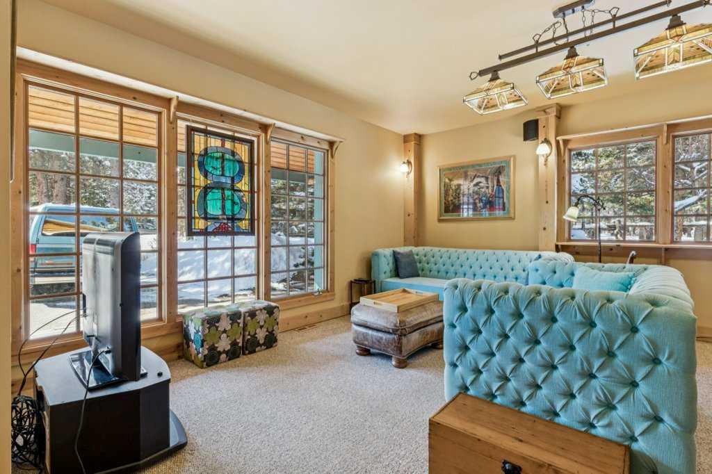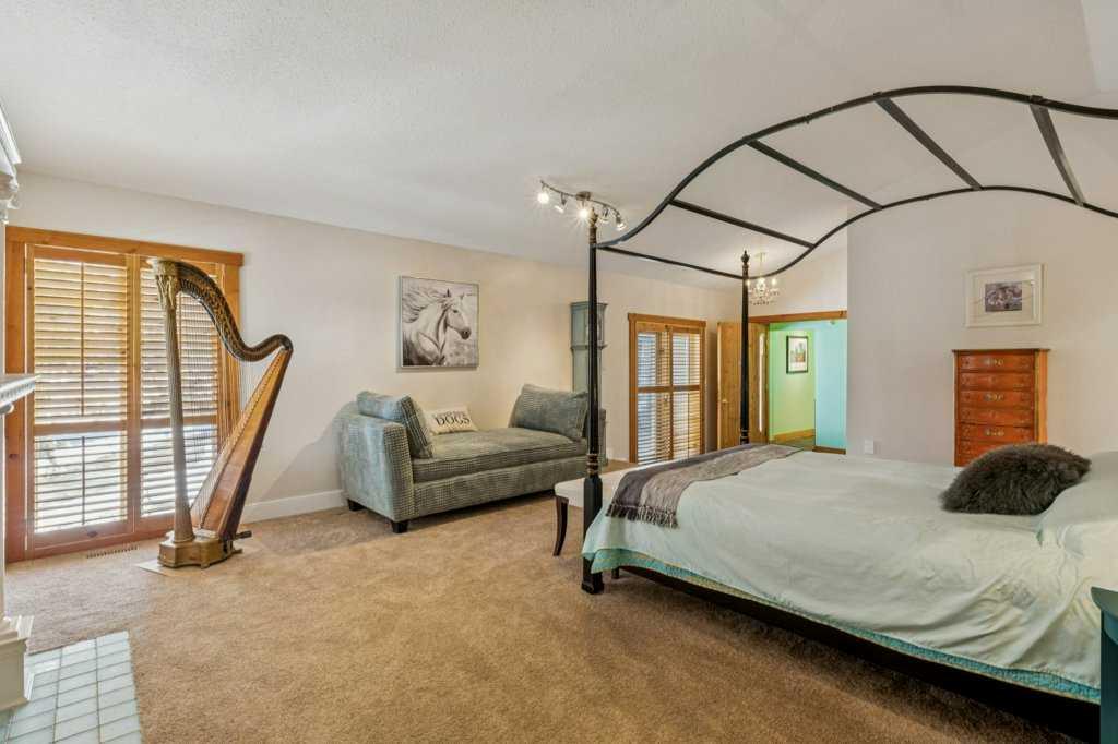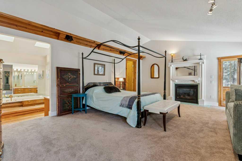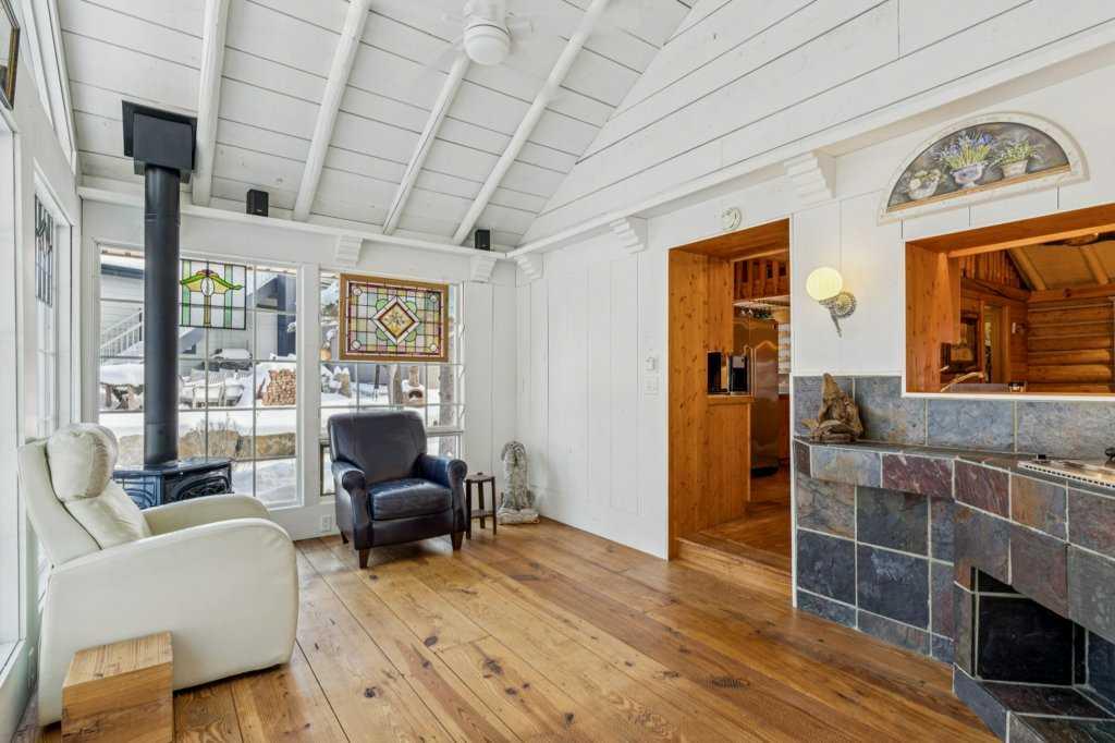 There are a few things that quintessentially define the hamlet of Bragg Creek. The sleepy small town feel. The connection to nature. And the uniqueness of the homes and architecture, hidden in the tees, continually surprising to discover. This incredible home started life as a one-room log cabin in 1950, and has been extensively renovated and added on to over the years, but retains its character and history. Entering the original cabin, you note the huge stone fireplace, the kitchen with updated appliances, 3-piece bath, and don’t forget to look up- there is a sleeping loft that would be appealing to any kid. Beyond the kitchen is an absolutely incredible sunroom with bbq grill and gas fireplace, which overlooks the backyard. Continuing on to the addition, you pass a large bedroom with it’s own patio access, laundry, and full bath, arriving in a large rec room. This is the perfect place to entertain guests, with a full bar! Toward the back of the addition, there is a stunning primary suite, a gigantic room with its own fireplace, patio access, walk-in closet, and stunning 5 piece en-suite. There is also a connected flex room that could be another bedroom, office, gym, or whatever you need! The courtyard of the home is a beautiful centrepiece, with a fire-pit to gather around, and it also has an stone water feature and outdoor bbq. The backyard also features a small heated cabin with full bath- a perfect guest house, craft studio, or Air BnB. The 0.7 acre lot, with it's wilderness setting, gets lots of animal visitors, feels remote, yet is only a 5 minute walk to the shops and restaurants of Bragg Creek, or to the Elbow River. This is a jewel, even among other unique homes, and must be seen! Explore this home using our 3-D tour, and then come experience it in person.