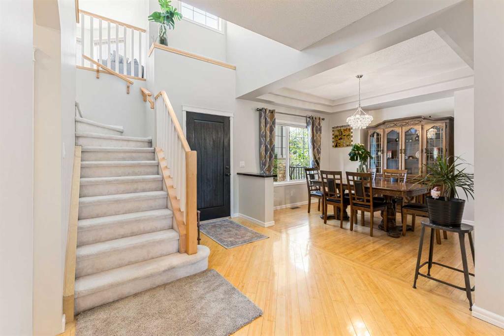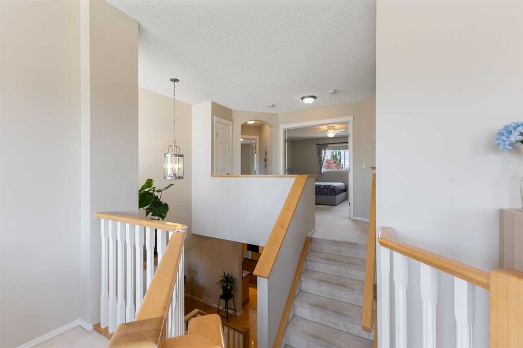 Unbeatable location, very nice renovations, and a great west facing backyard! Luxury builder Vicon Homes developed the basement in 2018, including a steel beam to create a wide-open recreation area (with in-ceiling surround sound), a large bedroom, and a 3-pc bathroom. In 2021, ensuite is fully renovated, including a deep soaker tub, oversized shower and two sinks. A major overhaul of the furnace (including replacing the heat exchanger and fan blowers), and a new A/C unit in 2022. This home has a great floor plan, a wide open, super-comfortable main level with 9 feet ceiling, three good-sized bedrooms upstairs, and an extra-large bonus room with four massive windows. Cozy deck with a roll-out awning and a patio, trees , flowers complete the backyard! Walking distance to Ernest Manning High School, Westside Rec Centre and LRT (just take the walking path at the end of Simcoe Gate), or drive downtown in 12 minutes, easy access to Stoney Trail.