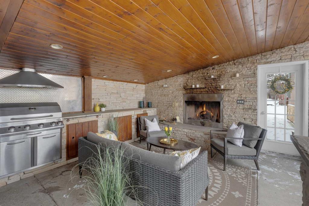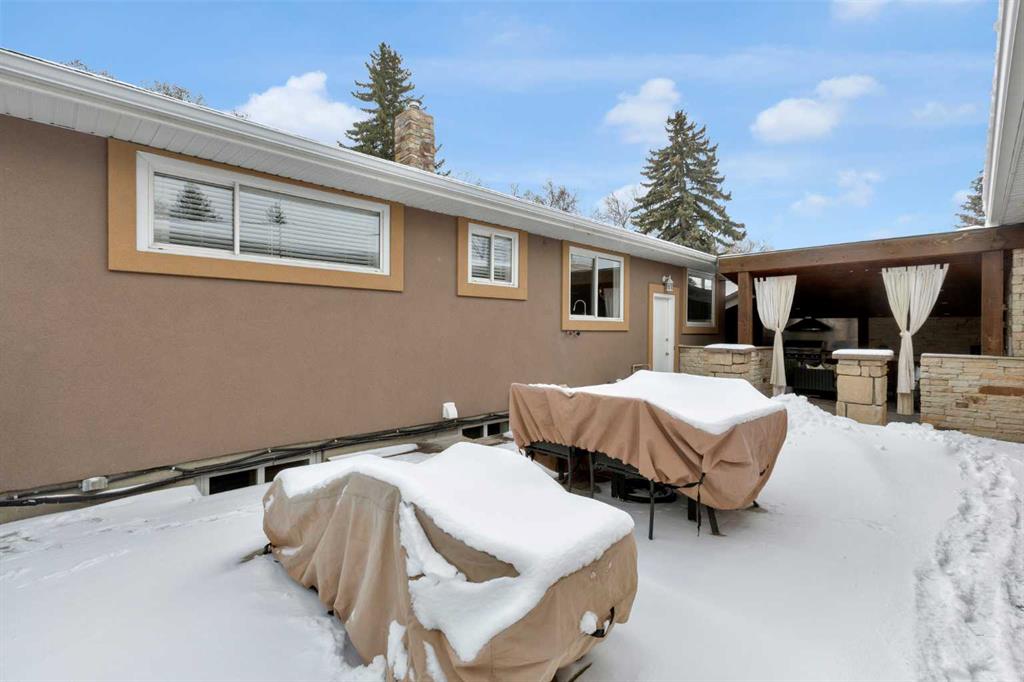 Set along a quiet street in the established community of Fairview, this beautifully maintained bungalow blends thoughtful updates, functional living space and an incredible backyard designed for year-round enjoyment. Mature surroundings and a welcoming neighbourhood atmosphere place schools, parks and everyday amenities within easy reach while offering a comfortable setting for families seeking both convenience and community. Hardwood flooring introduces the main level and extends through bright living spaces where detailed wainscotting adds timeless character. A welcoming living room invites relaxed evenings at home while the adjacent dining area sits beneath designer lighting, creating an inviting backdrop for everyday meals and special gatherings alike. Updated cabinetry, granite countertops and stainless steel appliances anchor the kitchen, where a gas cooktop and double wall ovens support effortless cooking and entertaining while generous workspace keeps everything within easy reach. Three bedrooms are thoughtfully positioned on the main floor, providing flexible space for family living, guests or a home office, while an updated 4 piece bathroom delivers everyday function with clean modern finishes. Additional living space continues in the fully finished basement where a large recreation room easily accommodates movie nights, games and casual gatherings. A fourth bedroom with egress window offers comfortable privacy for guests or older children, while a newer bathroom enhances flexibility for busy households. Outdoor living becomes a standout feature of this property where an incredible covered entertainment area forms a true backyard retreat. A built-in outdoor kitchen and fireplace create the perfect atmosphere for hosting friends through every season, while a separate ground level deck captures sunny afternoons and quiet morning coffees. Privacy and functionality are enhanced by the detached triple garage positioned at the rear of the property, offering exceptional space for vehicles, storage, hobbies or workshop use. Central air, in ground sprinkler & 4 th parking area. Fairview continues to attract families thanks to its close knit community feel and outstanding central location. Schools, off leash parks and neighbourhood pathways are within walking distance, while nearby Macleod Trail and Heritage Drive provide convenient access to shopping, restaurants and daily services. Chinook Centre, the C-Train and Deerfoot Meadows are only minutes away, making commuting and weekend errands easy while still enjoying the charm of an established residential neighbourhood.