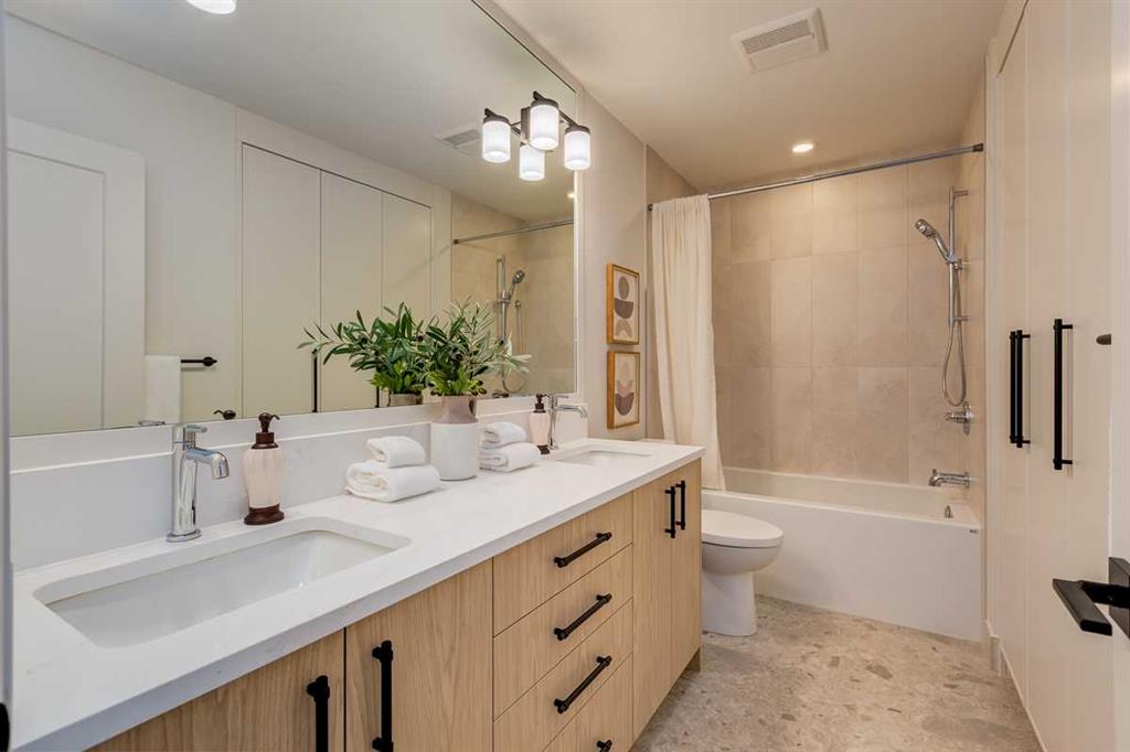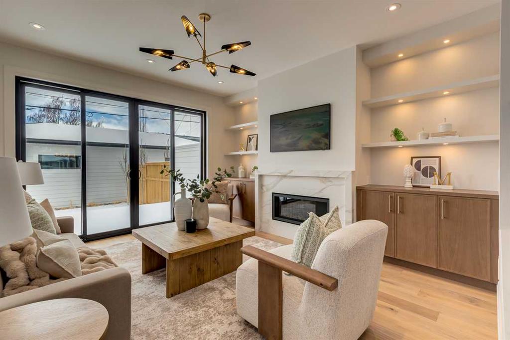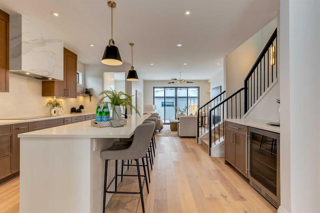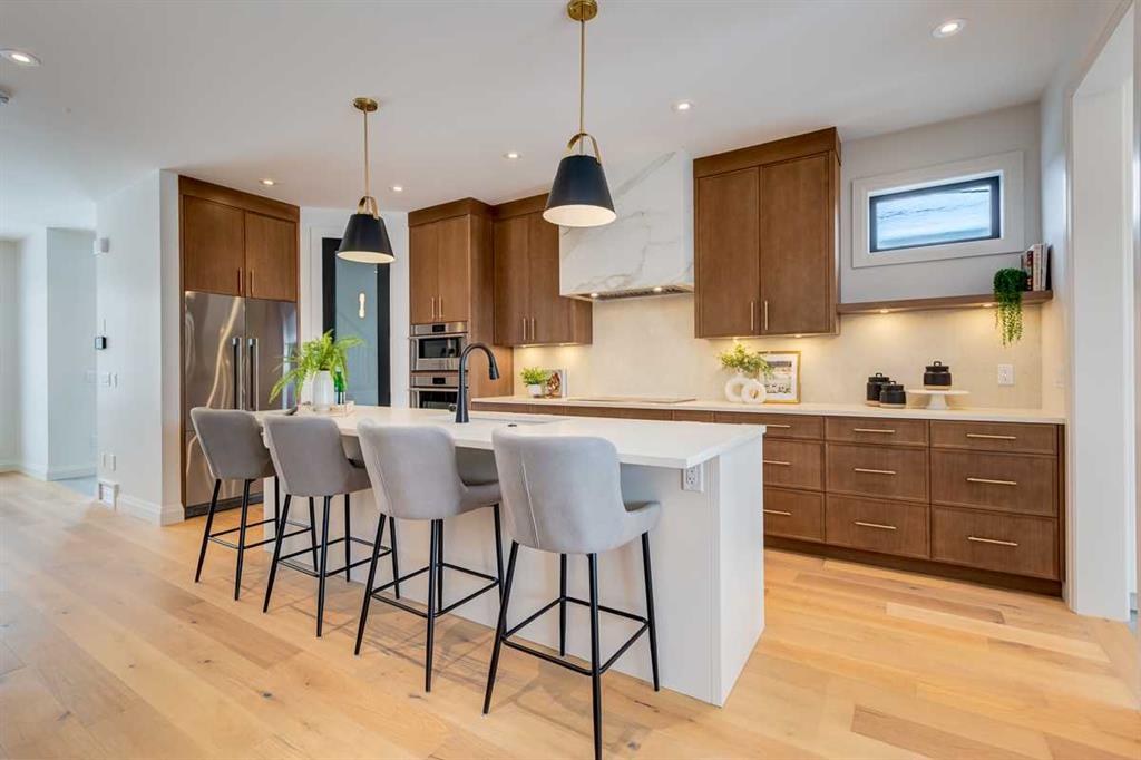 Welcome to this brand-new, exquisitely designed custom home with a West backyard built by Treehouse Developments — an award-winning builder celebrated for quality craftsmanship and thoughtful design. Located in the heart of Killarney, this property stands apart from the typical infill with its elevated finishes, concrete party wall, full New Home Warranty and a level of luxury rarely found, offering both peace of mind and timeless appeal. It’s packed with upgrades throughout and offers a truly refined living experience. Step inside to a welcoming foyer and dining room that flow seamlessly into an open-concept kitchen and living area, ideal for both everyday living and entertaining. The kitchen is equipped with high-end Fisher & Paykel appliances, stone countertops throughout, a large island, walk-in pantry, and stunning white oak rift-cut cabinetry. Extensive custom built-ins are thoughtfully integrated into the foyer, mudroom, and living room, adding function and elegance throughout the main floor. The living room features a porcelain-clad fireplace complete with Frame TV and sliding patio doors leading to a spacious maintenance-free composite deck. A functional mudroom off the rear entry leads directly to the garage, making daily routines effortless. Upstairs, a dramatic skylight floods the stairwell and bonus area with natural light, creating the perfect space for a desk or reading nook. The primary bedroom is impressively spacious, creating a true retreat with a spa ensuite that includes a standalone tub, steam shower with handheld, and heated floors. The main bath offers double sinks and linen storage, while upstairs laundry provides added convenience. Custom built-in closets are found throughout. The fully developed basement includes a large rec room with dry bar and bar fridge, a bedroom suite with walk-in closet and ensuite, and hydronic in-floor heating paired with an on-demand boiler for year-round comfort. A central AC/heat pump system adds modern efficiency. Outside, enjoy the fully landscaped private sunny yard and an oversized 21' x 21' garage, insulated and drywalled to fit a truck. The exterior blends stone, cedar accents, and Hardie siding for striking curb appeal. This home is move-in ready and exemplifies the craftsmanship, quality, and design that make Treehouse Developments a standout builder in Calgary. It’s rare for a Treehouse-built home to hit the market, making this a special opportunity to own a truly exceptional property.