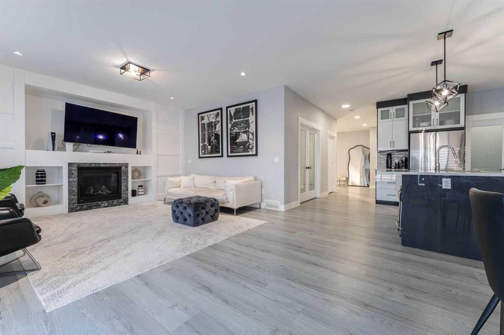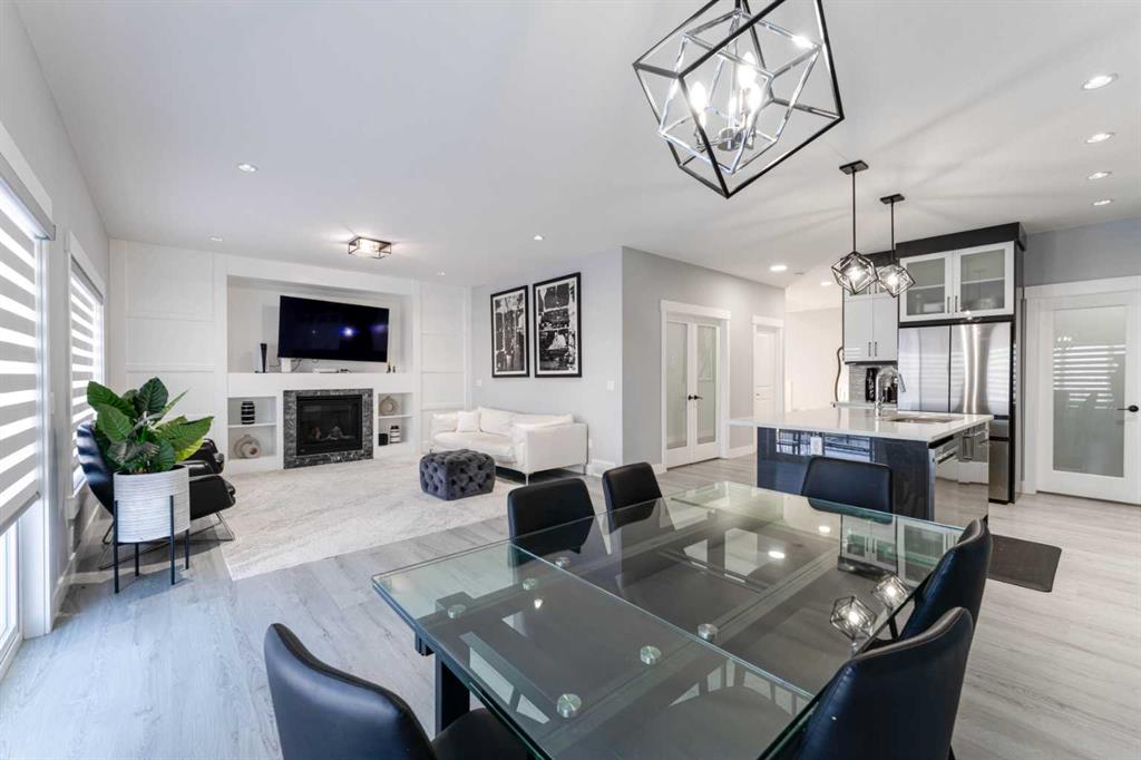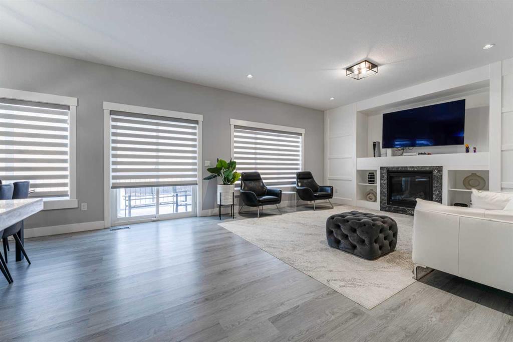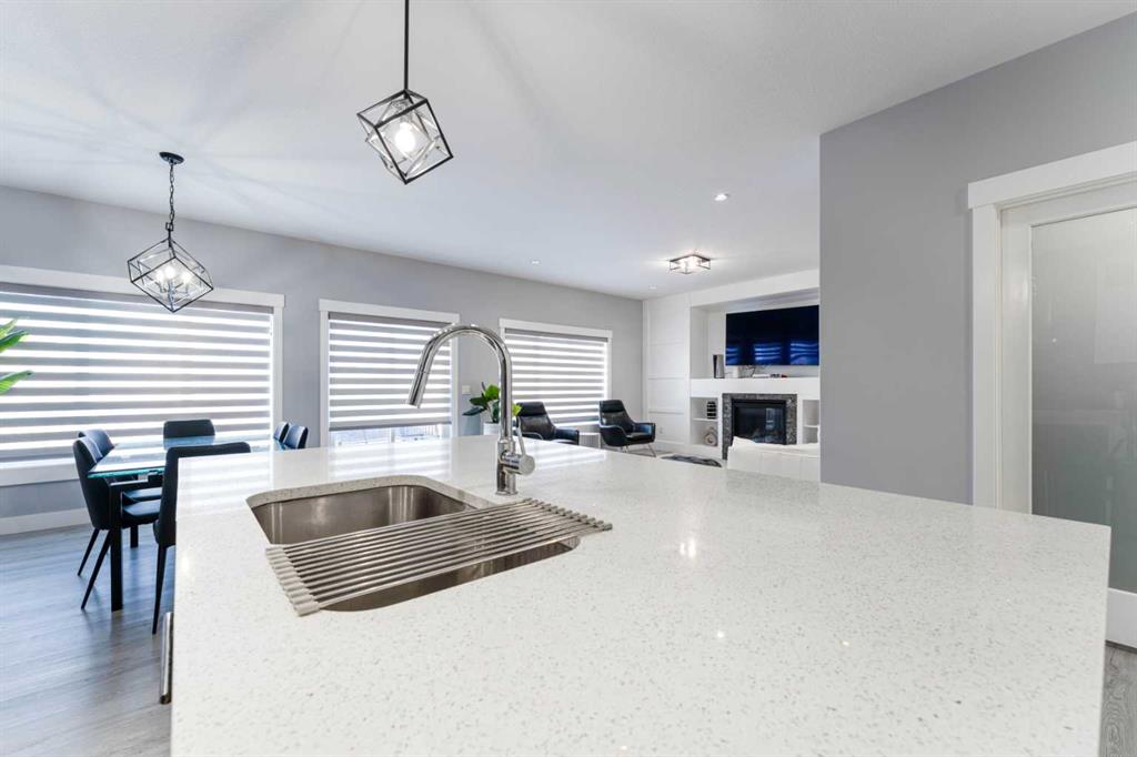 Step inside to a bright, open-concept main floor designed for comfortable family living and effortless entertaining. The spacious kitchen is the heart of the home, featuring full-height soft-close cabinetry, quartz countertops, quality lighting, and a large island ideal for gathering. A walk-through pantry with wood shelving connects seamlessly to the mudroom, creating a practical flow for daily life. The adjoining dining area and family room are filled with natural light, highlighted by a cozy fireplace and built-in cabinetry that add warmth and character.