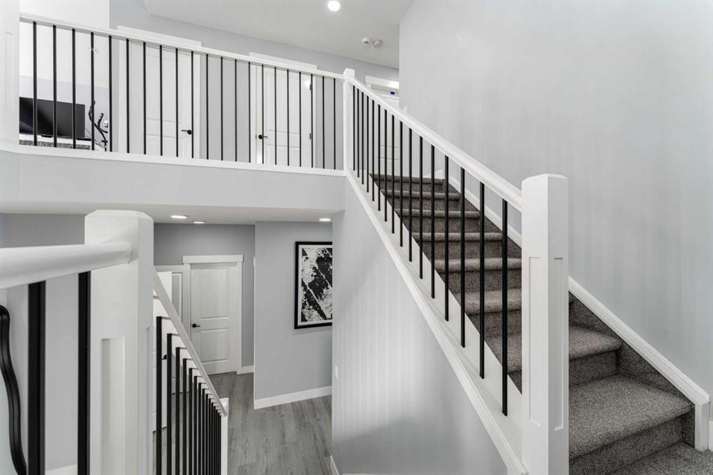 The main level also includes a dedicated work-from-home den, a generous mudroom with built-in bench and hooks, and a convenient 2-piece powder room. Throughout the main floor y,ou’ll find 9-foot ceilings, durable vinyl plank and tile flooring, and thoughtful finishing details that elevate the home’s design.
