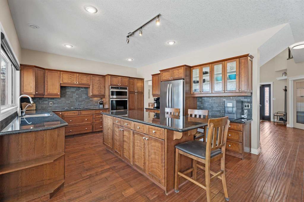 bar, bookcases, breakfast bar, built-in features, ceiling fan(s), central vacuum, crown molding, double vanity, granite counters, high ceilings, kitchen island, no smoking home, separate entrance, soaking tub, storage, sump pump(s), vinyl windows, walk-in closet(s), wet bar