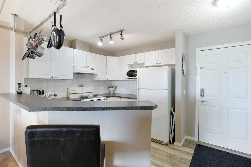 Welcome to this two-bedroom, one-bathroom condo in the desirable lake community of Arbour Lake. This unit features vinyl plank flooring throughout and a functional layout with an open living and dining area. Step outside onto the southwest-facing balcony, offering a pleasant view and a great spot to enjoy afternoon sun.