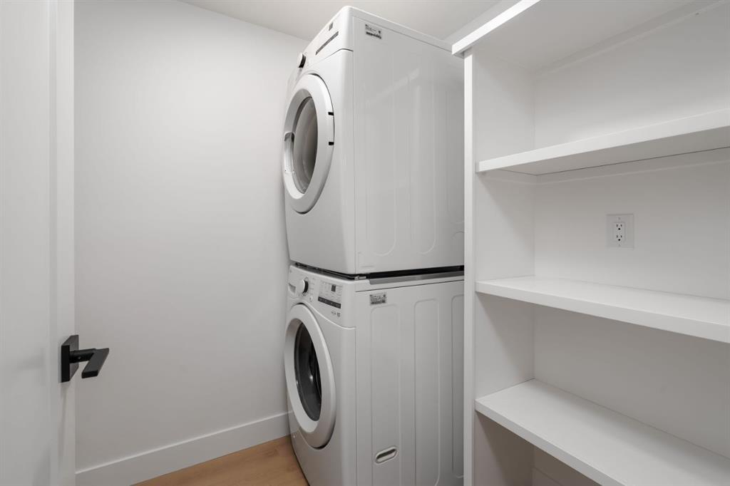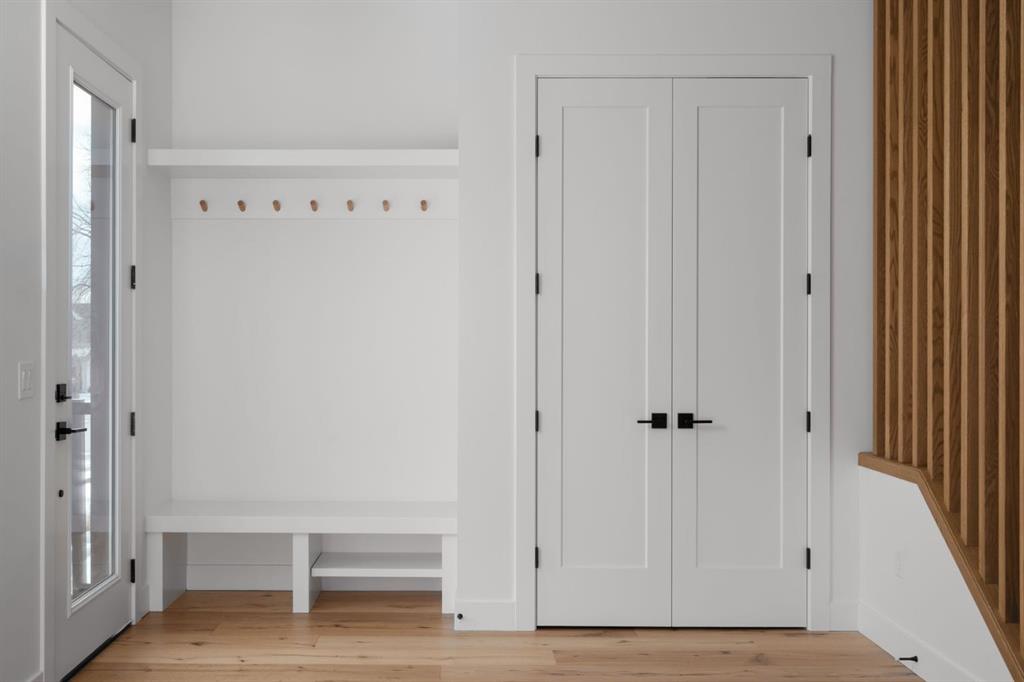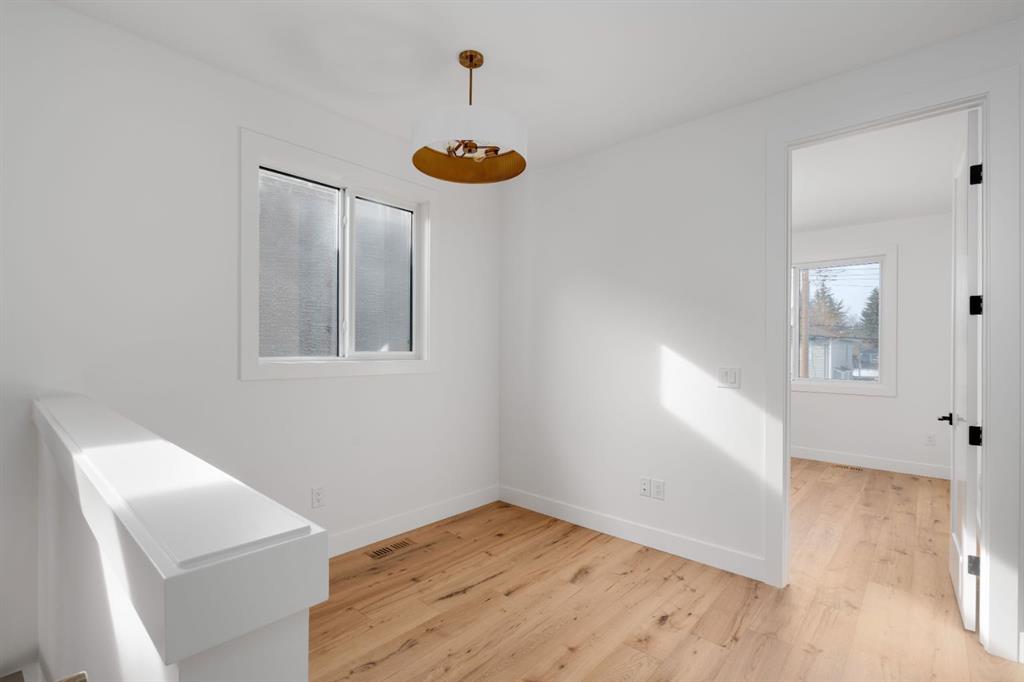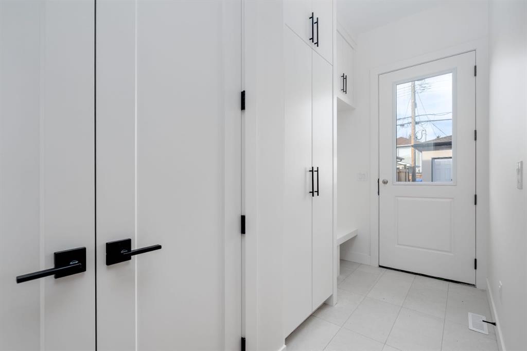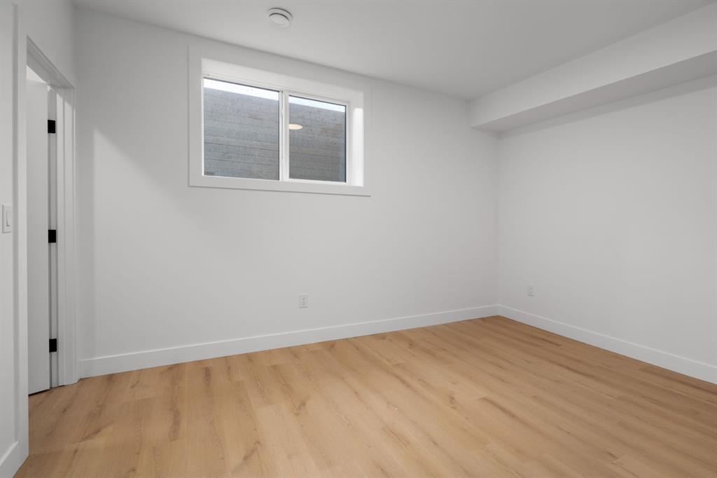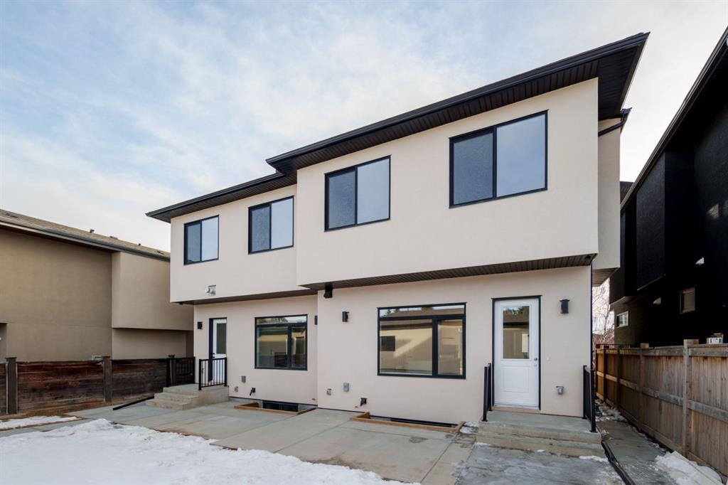 Welcome to The Killarney Collection in SW Calgary—thoughtfully crafted on a quiet street, this fully upgraded duplex infill offers a refined balance of scale, texture, and modern comfort. From the moment you arrive, the home makes a striking first impression with its sleek, contemporary exterior, pairing oversized triple-pane windows for abundant natural light with warm natural tones of true brick detailing and stucco accenting stands out. Inside, 10-foot main floor ceilings create a grand sense of arrival, setting the tone for the interior designer–curated colour palette carried throughout the home. Every detail has been intentionally explored, with the heart of the main floor anchored by a chef-inspired gourmet kitchen. Featuring a premium Bosch appliance package, fully custom-painted cabinetry, and an oversized waterfall granite island, the space effortlessly blends luxury with everyday functionality. A dedicated central dining off the kitchen offers a warm setting for gatherings, while the front living room provides a more intimate retreat, both areas are anchored by the full feature-wall gas fireplace—perfect for evenings spent unwinding. Thoughtful storage solutions are seamlessly integrated, including built-ins at the entry and a fully custom mudroom at the rear, ensuring every inch of space is maximized. Ascending to the upper level, subtle design moments continue to impress, with a full wood feature wall, custom stair lighting, and luxury wide-plank hardwood flooring flowing continuously throughout both the main and upper levels for a seamless transition.The oversized primary bedroom is a true sanctuary, showcasing a vaulted and peaked ceiling design with expansive windows that welcome morning light. The spa-inspired ensuite features a dual vanity, an expansive full-tile shower, and a calming, private retreat. Two additional bedrooms offer generous proportions, each complete with custom closet built-ins. The upper-level laundry room maintains the home’s commitment to efficiency and design, offering full cabinetry, a folding counter, side-by-side washer and dryer, and a laundry sink. A versatile work-from-home alcove completes the upper floor, easily functioning as a den or secondary living space.The lower level further extends the home’s flexibility with an oversized 2-bedroom, 1-bath legal suite (900+SQFT), centered around a spacious open kitchen—ideal for rental income, guests, or multi-generational living. A separate full laundry room, understair storage, and built-ins throughout each closet to ensure the same level of thoughtful design continues below.Perfectly positioned close to inner-city Calgary, recreation centres, shopping, and public transit, this Killarney residence offers a timeless blend of form and function—designed to live beautifully today and adapt effortlessly for tomorrow.