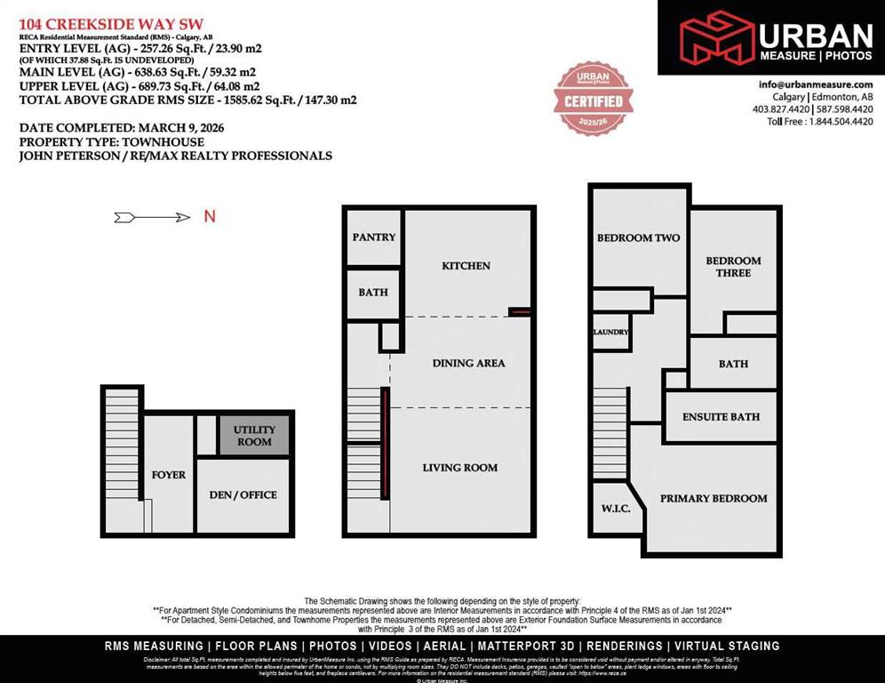 StreetSide proudly presents this exceptionally popular interior-unit townhome, where expansive living areas meet modern comforts and sophisticated finishes. The thoughtfully designed floorplan features three spacious upper-level bedrooms and two and a half well-appointed bathrooms, complemented by a versatile lower-level den perfect for a home office or quiet retreat. The heart of the home is an inviting open-concept main floor, anchored by a large gourmet kitchen featuring a functional breakfast bar for casual dining. This bright living space transitions seamlessly to a private balcony, offering a perfect setting for outdoor relaxation. The interior showcases high end craftsmanship, including modern white slab-style cabinetry with a full bank of drawers for maximum storage. The kitchen is further elevated by polished white quartz countertops and a full suite of premium stainless steel appliances. Durable luxury vinyl flooring runs throughout the primary living areas, while the stairs and upper level are finished with plush carpet over an 8lb underlay for superior comfort. Additional conveniences include an attached double car garage, professionally maintained landscaping, and a lifestyle defined by maintenance free living. Life at Sirocco Gate East in Southwest Calgary is about more than just living—it’s about thriving. Imagine having a picturesque central green space at your doorstep, offering opportunities for both tranquil reflection and vibrant community events. Residents enjoy the luxury of sophisticated townhome living with the Rocky Mountains as a backdrop and easy access to both Stoney Trail and Macleod Trail. With daily essentials located in nearby shopping centers, this home offers the perfect blend of scenic serenity and urban convenience.