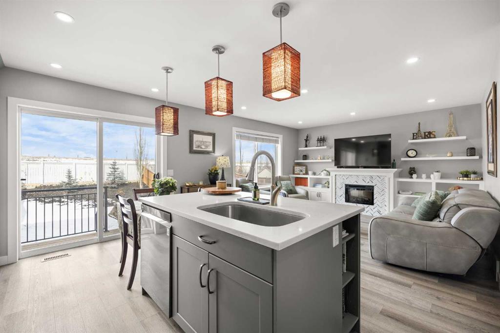 Step inside and be greeted by a soaring 2-storey foyer with durable vinyl plank flooring throughout the entire home, creating a fresh, contemporary feel. Walk into the heart of the home, where you'll discover a stunning open-concept living space flooded with natural light from expansive windows. The bright and spacious Living room is beautifully anchored by a stylish tiled gas fireplace with elegant built-in shelving, creating the perfect backdrop for relaxation and entertaining. The completely remodeled Kitchen showcases sleek cabinetry with a centre island featuring stunning quartz countertops and built in table for your day to day dining, designer pendant lighting, stainless steel appliances (professional series Fridge just 2 years old), and backsplash tile—a harmonious blend of form and function. Patio door to a full-width two-tiered cedar wood deck with aluminum railing, a good sized back yard that was nicely landsacped with trees —perfect for outdoor entertaining and summer meals. A Laundry room with storage space and powder room complete the main level.