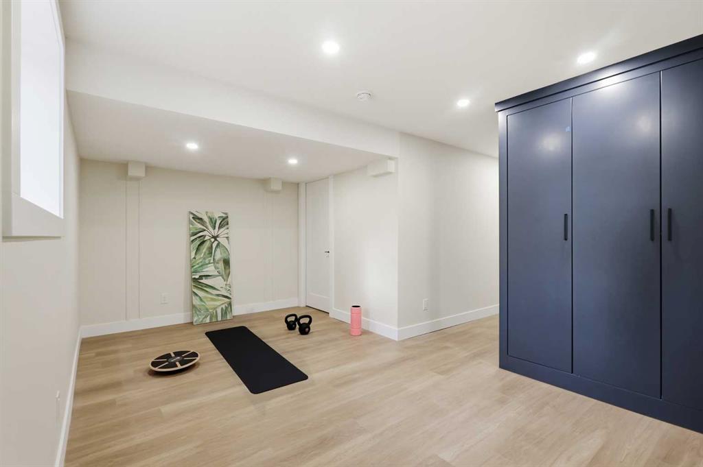 Downstairs, the lifestyle continues with a lounge-ready media space, wet bar and glass-front wine room, plus a dedicated gym and a generous lower-level “second primary” with large above-grade windows and tranquil backyard views. A hidden storage room adds a fun pop of personality.