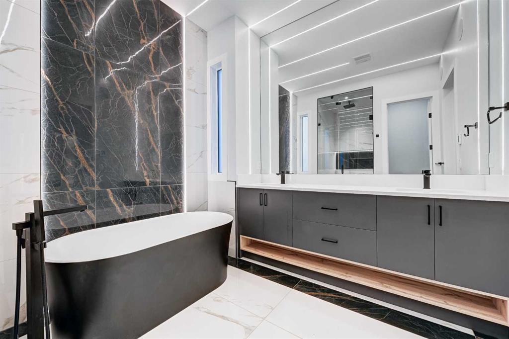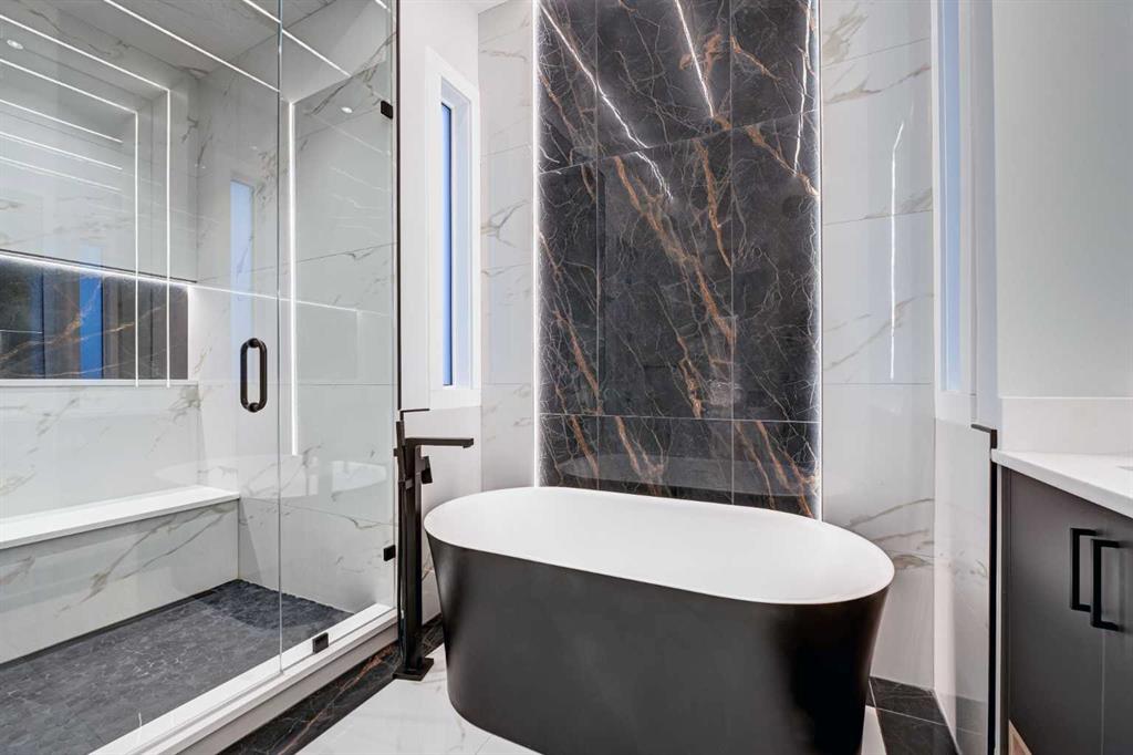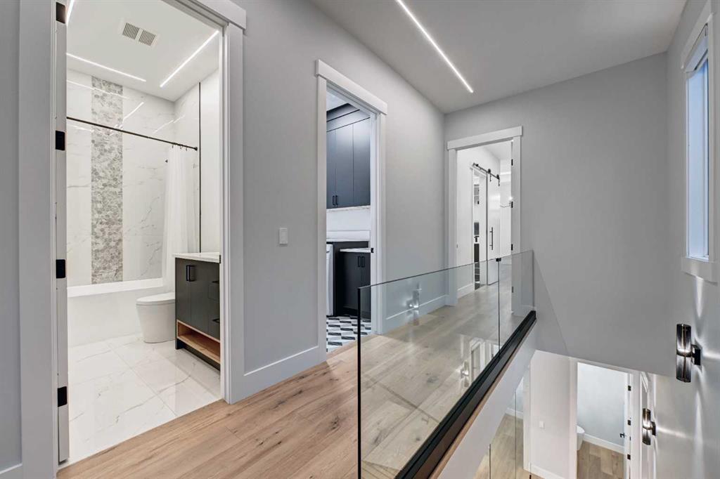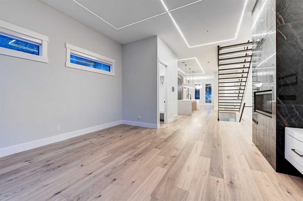 Set in one of Upper Mount Royal’s most prestigious pockets, this newly built residence delivers a refined blend of architectural elegance and modern design across more than 3,000 sq ft of meticulously crafted living space. With 3+1 bedrooms and a thoughtfully curated layout, this home captures the essence of upscale inner-city living while embracing the timeless character of the neighbourhood. A striking brick façade creates a lasting first impression, while the west-facing outdoor space invites warm afternoon light and effortless entertaining. Inside, the main level is defined by soaring 11-foot ceilings, wide-plank hardwood flooring, and an abundance of natural light that enhances every detail. A fully integrated smart home system elevates daily living with automated power blinds and customizable lighting, while upgraded designer light fixtures add an extra layer of sophistication throughout. The open-concept design seamlessly connects each space, complemented by a well-appointed mudroom and elegant powder room. At the heart of the home, the kitchen is designed to impress—featuring a massive waterfall quartz island, sleek custom cabinetry, and a high-end gas range that will appeal to both everyday living and elevated entertaining. The adjoining living room offers a stunning focal point with its tiled fireplace and custom-built media centre, while large sliding glass doors create a seamless transition to the backyard. A statement floating staircase leads to the upper level, where 10-foot ceilings continue the sense of openness. Here, you’ll find three generously sized bedrooms, a beautifully finished 4-piece bathroom, and a fully equipped laundry room with sink and ample storage. The primary suite is a true retreat, offering a spacious walk-in closet and a spa-inspired 5-piece ensuite complete with a freestanding soaker tub, oversized glass shower, and dual vanity. The fully developed lower level expands the home’s versatility with 9-foot ceilings and the option for in-floor heating. Designed for both relaxation and recreation, it features a large family room with a wet bar—perfect for movie nights or hosting guests—along with a dedicated exercise space, a fourth bedroom, and an additional 4-piece bathroom.
