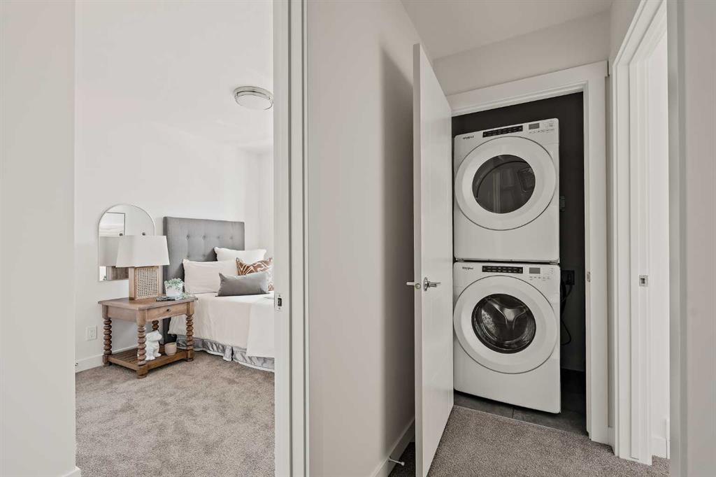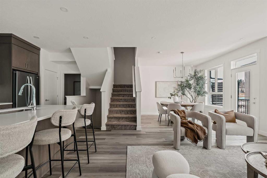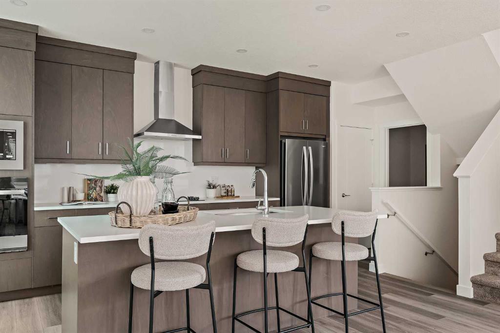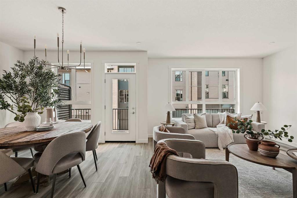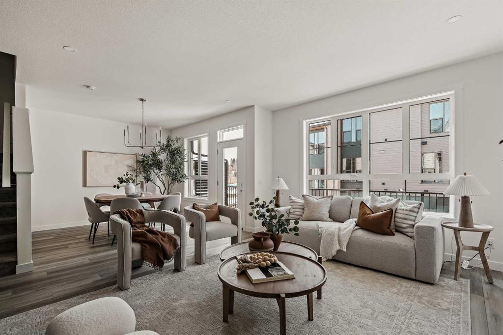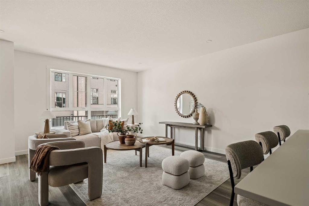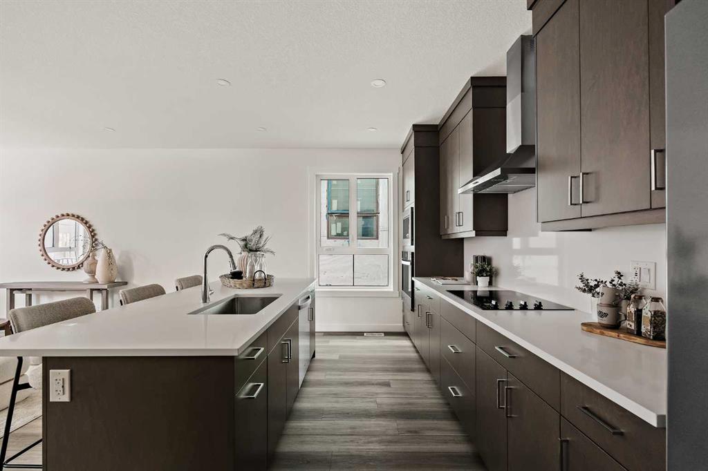 **Open House this Sunday, March 15th from 11:00 AM - 1:00 PM** Welcome to the Torrey at Crown Park - an exceptional opportunity offering a brand-new, move-in-ready townhouse featuring 3 bedrooms, 2.5 bathrooms, and a private double-attached garage. Offering nearly 1,700 ft² of thoughtfully designed living space, this end-unit townhome is the last opportunity ready for immediate possession and it is perfectly positioned within the development. Large, southwest-facing windows provide a bright and comfortable living environment by bringing in natural light throughout the day. The bright and open main living area showcases a stunning kitchen with endless upgrades, including built-in appliances, a quartz island, and timeless cabinetry. Designed with entertaining in mind, the kitchen flows seamlessly into the expansive main living area, creating the perfect space for gatherings or everyday living. Large southwest-facing windows throughout the main level enhance the sense of space and light, creating a welcoming atmosphere year-round. The impressive great room offers ample space for virtually any furniture configuration and opens directly into the large dining area, allowing for a seamless transition between spaces. The main level is complete with a 2-piece powder room and direct access to the sprawling 26' balcony that spans the width of the home. The outdoor living space is equipped with a BBQ gas line and hose bib, adding everyday convenience and making it easy to enjoy outdoor living. The upper level has been thoughtfully designed, with the primary suite spanning the width of the home while the secondary bedrooms and main bathroom are positioned on the opposite end for added privacy. The ~12' x 12' primary bedroom easily accommodates a king bedroom suite and includes a walk-in closet and private 4-piece ensuite featuring dual sinks and a walk-in tiled shower. The upper level is completed by two additional bedrooms, a full bathroom, and convenient upper-floor laundry. The flexibility of three bedrooms makes this home ideal for families, guests, or a dedicated home office, offering excellent long-term versatility and value. The entry level provides access to the private double attached garage, which includes additional space for storage along with a large dedicated storage room, keeping everything organized and secure year-round. Located in Crown Park - one of Calgary’s last remaining inner-city developments - just minutes from downtown, this home offers exceptional convenience with major transportation routes, amenities, and green spaces all close by. Perfect for first-time buyers, investors, or those seeking a lock-and-leave lifestyle with maintenance-free living, this brand new home is backed by a comprehensive builder warranty and Alberta New Home Warranty, allowing you to purchase with confidence and peace of mind.