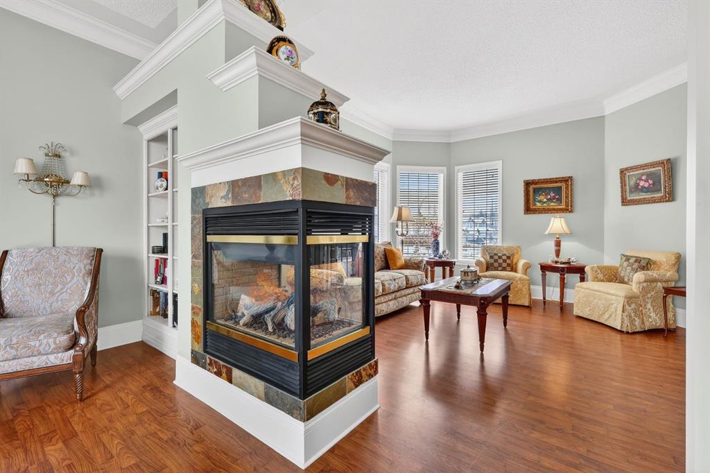 Welcome to a truly remarkable home in the heart of McKenzie Lake. Whether it's morning walks along the ridge, bike rides through the river valley, or quick access to everyday amenities along 130th Avenue, this location blends outdoor living with everyday convenience. Positioned on a corner lot, the exterior of this home is nothing short of striking. Sweeping across the lot, the front entrance features grand pillars, exposed aggregate walkway, and architectural detailing that sets the tone for what awaits inside. Step through into the foyer framed by soaring 10 foot ceilings, elegant wrought iron railings, and a sense of scale that feels impressive yet welcoming. Just off the entrance sits a beautiful home office, enclosed by glass French doors and finished with custom built in bookshelves, creating an inspiring space for your needs. A few steps up, the upper level introduces the primary retreat, thoughtfully elevated to create a sense of privacy and grandeur. This space features dual walk-in closets and an ensuite designed with indulgence in mind. A corner soaker tub invites relaxation, while a standalone shower, generous counter space, and a private water closet complete this bathroom. The main level unfolds with timeless architectural detail. A formal dining area framed by custom pillars and archways creates a memorable setting for hosting, while the passthrough nook offers an added touch of convenience. Look up and notice the thoughtful detailing around each ceiling light fixture, subtle craftsmanship that adds character throughout. Just beyond, a formal sitting room provides a refined yet comfortable space. This elegant area flows into the heart of the home where a triple sided fireplace connects the living spaces with warmth and ambiance. The main living room is designed for everyday comfort, complete with a built-in entertainment centre. At the center of it all is the kitchen, a true showstopper. The expansive corner layout provides an abundance of counter space, cabinetry, and drawers. A glass cooktop and a custom hood fan that blends with the cabinetry add to the polished design. The large island serves as both a prep space, while also adding practicality with seating. Just beside it, a small dining area is wrapped in windows and overlooks the back deck and yard. Downstairs, the fully developed, walk out basement continues the home’s thoughtful design. Large windows allow natural light to pour in, making the space feel bright. A custom wood bar and another fireplace anchors the recreation area, perfect for hosting friends or relaxed evenings in. This level also includes three additional bedrooms and a spacious five piece bathroom. The lower level mudroom offers extra storage, laundry room, a convenient laundry chute exit, and access to the garage. The secluded yard feels like a private retreat where mature trees create a peaceful backdrop that offers both shade and privacy. Homes like this rarely come available, once you step inside you'll understand why.