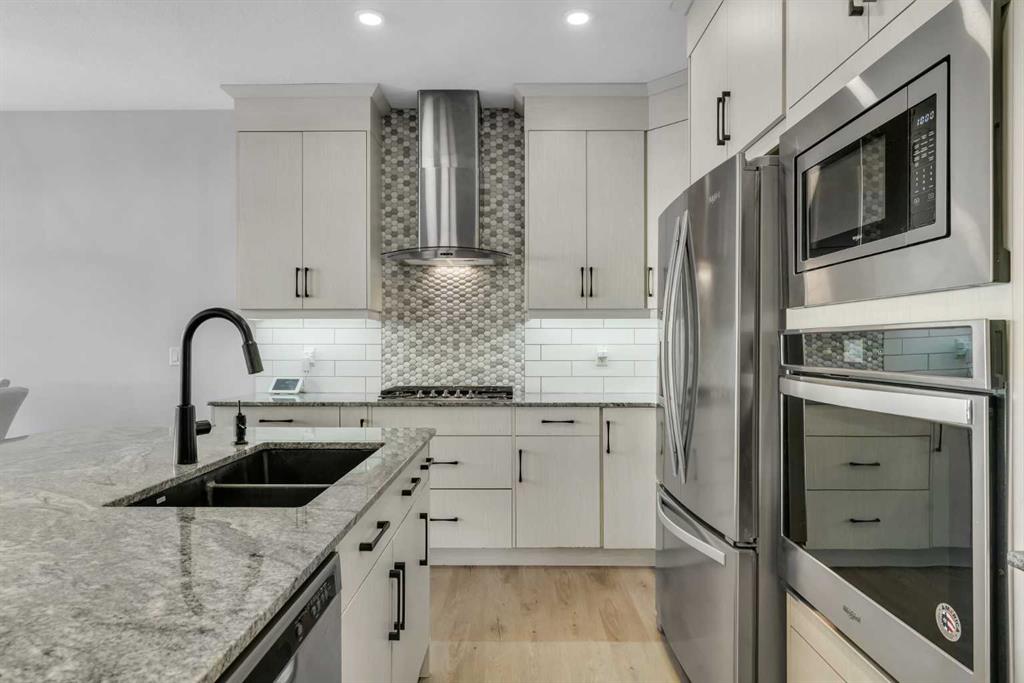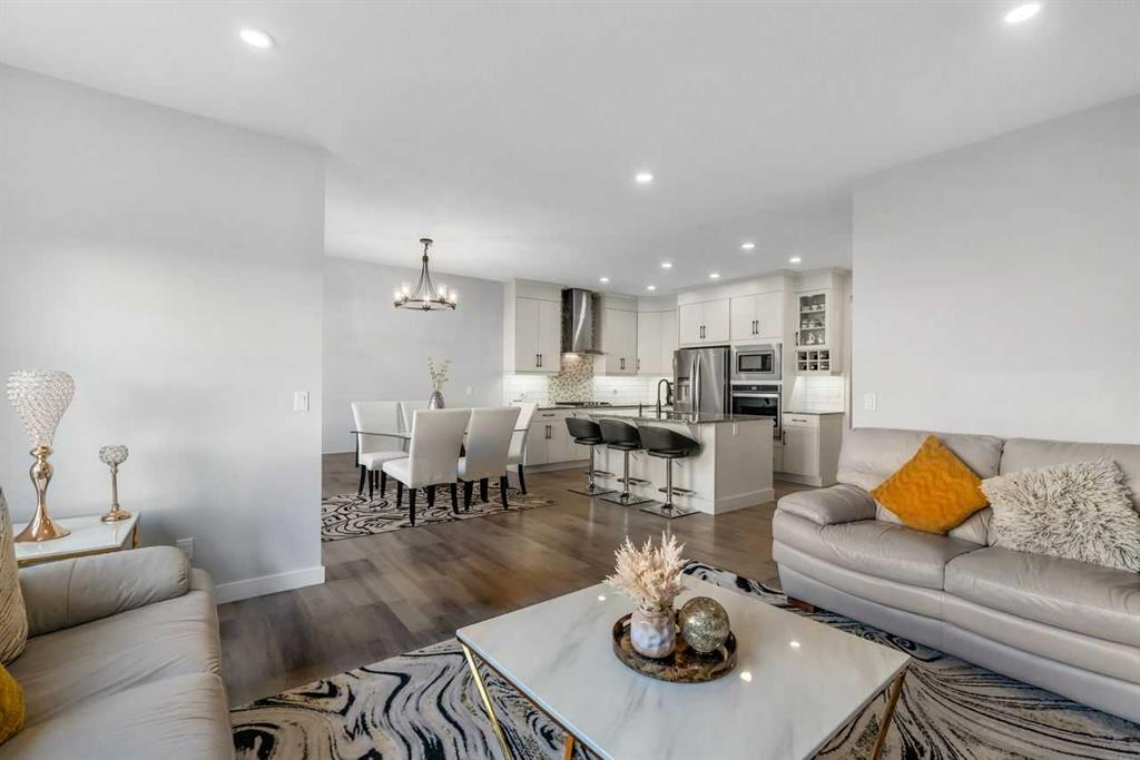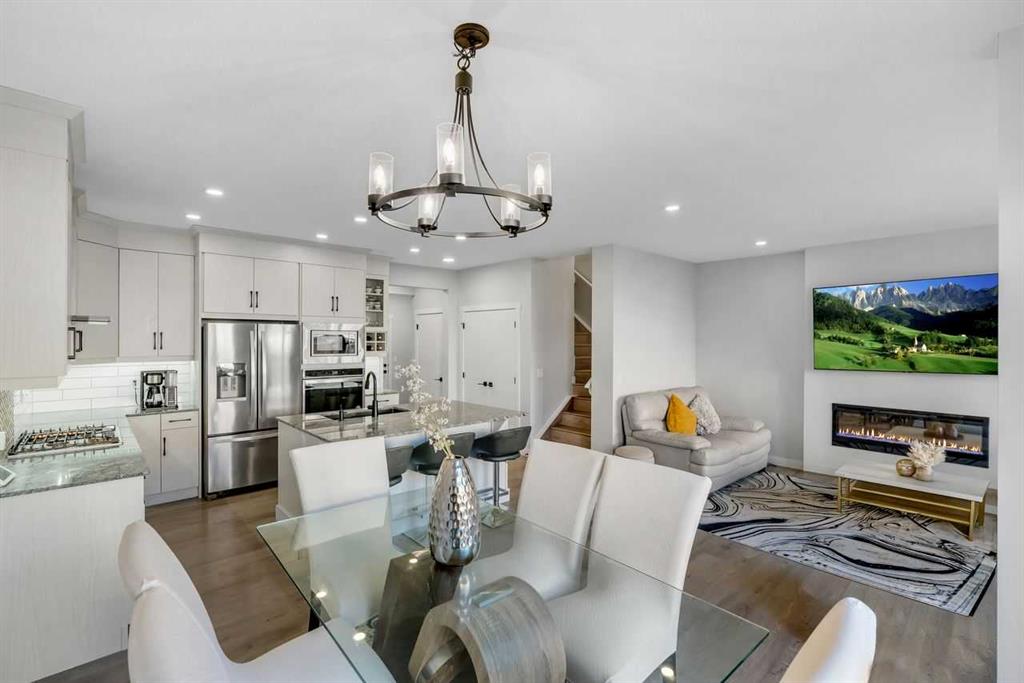 *Watch the video* Open House March 15th: 12pm - 2pm. This is the one! Home Sweet Home! Fall in love at first sight with this picture-perfect home where luxury meets everyday functionality in the heart of Carrington NW. This fully upgraded, nearly 2,000 SQFT, move-in ready Trico-built home showcases high-end finishes and modern elegance — prepare to be impressed! Located on a quiet, family-oriented street just steps from walking trails and the pond, this home offers the perfect setting for nature lovers. Excellent Location | Bright & Open Floor Plan | Generous Size Backyard | Stunning Chef's Kitchen | Top of the Line Appliances | 3 Spacious Bedrooms (All with walk-in closets) | Vinyl Flooring Throughout | Bonus Room with Vaulted Ceilings | Side Entrance | 9FT Basement Ceilings. Upon entry, a warm and inviting foyer welcomes you into an open floor plan filled with natural light. The state-of-the-art chef’s kitchen is the true showstopper — featuring gorgeous quartz countertops, extensive cabinetry including glass cabinets and wine shelving, sleek black hardware, an upgraded designer backsplash, under cabinets lighting, and a massive island perfect for entertaining. The elegant living room is framed by large windows and a cozy fireplace, creating a warm and inviting space for winter evenings. The spacious dining area comfortably accommodates a 6–8 seat table for family gatherings. Upstairs, upgraded vinyl flooring continues throughout — no carpet whatsoever! The vaulted bonus room is ideal for movie nights or a kids’ retreat. This level offers three generous bedrooms, including a primary suite with a walk-in closet and a private ensuite featuring a tub, glass shower, and dual sinks. Two additional bedrooms with walk-in closets, a full bathroom, and a convenient laundry room complete the upper floor. And with a separate side entrance and an unfinished basement with rough-ins for a future bathroom, wet bar, and laundry, you’re not just buying a home — you’re investing in future potential. Ample of backyaard space - something which would find as a rare feature now days - your kids would love to play around and your summer gatherings would be amazing. Located in a desirable NW Calgary community with quick access to Stoney Trail, schools, parks, and shopping, this home offers the perfect blend of luxury, space, and modern convenience. Don’t miss your chance to own this fully loaded dream home.