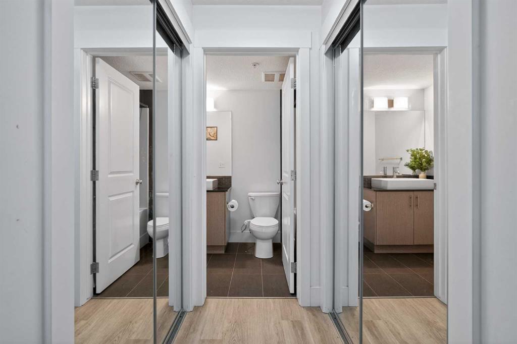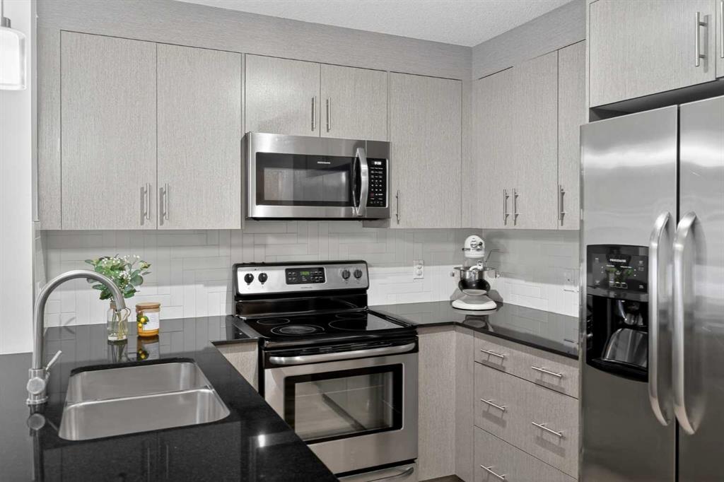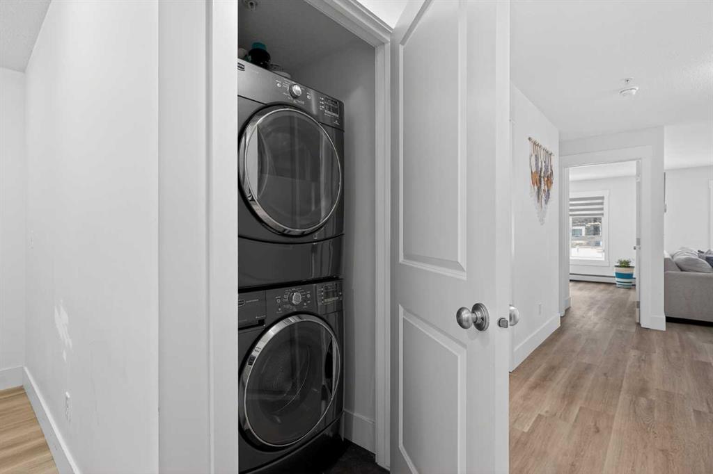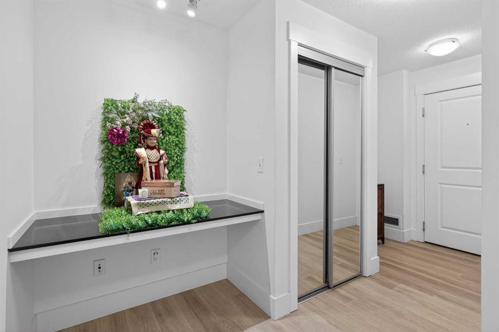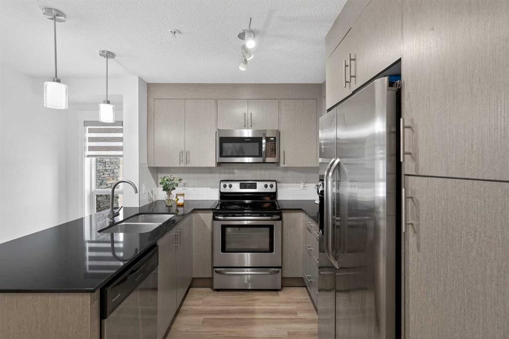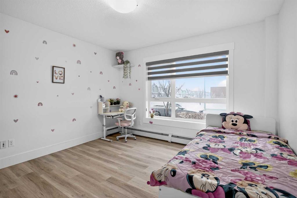Discover exceptional ground-floor living in this brilliantly lit corner unit at #4106, 240 Skyview Ranch Road NE. Spanning roughly 940 square feet, this two-bedroom, two-bathroom residence welcomes you with a wonderfully spacious and dedicated entryway, instantly providing a house-like feel that keeps the main living areas distinct and clutter-free. Moving inside, the open-concept living room is bathed in gorgeous natural light courtesy of the coveted South and East-facing windows, creating a warm and inviting atmosphere throughout the day. The interior boasts a refined, modern aesthetic with crisp paint and durable luxury vinyl plank flooring, both newly updated in 2025. Cooking and entertaining are effortless in the stylish kitchen, beautifully finished with sleek quartz countertops, a casual breakfast bar, and a stainless steel appliance package. The primary bedroom serves as a private retreat complete with his and hers closets and a full ensuite bathroom, while the generous second bedroom and additional bathroom offer fantastic versatility for family or a home office. What truly sets this property apart is the unparalleled convenience of its layout. Ground-level patio doors open directly to the outside, allowing you to bypass elevators and communal hallways entirely. This creates a seamless daily routine, especially for families, as students can step out the door and stroll straight across the street to Prairie Sky School. Outdoor enthusiasts will love having soccer and baseball fields just steps away, and commuting is a breeze with a nearby bus stop and quick access to local restaurants and shopping. Complete with a heated underground parking stall conveniently located right next to the elevator, plus abundant street parking directly outside your patio for guests or a second vehicle, this home flawlessly combines smart design with an unbeatable, walkable lifestyle.