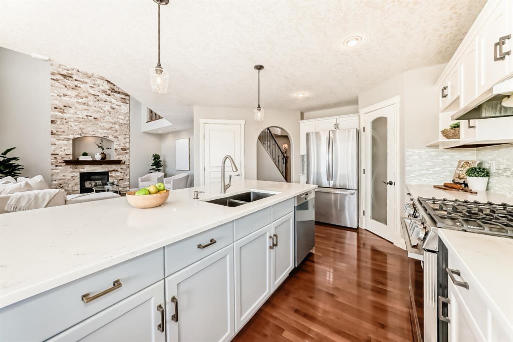Welcome to this beautiful, bright, 2-storey walkout home with over 3000 square feet of finishing living space in the highly sought-after community of Sherwood. The bright main floor is filled with natural light and features a amazing living room with soaring two-storey windows and a breathtaking floor-to-ceiling stone fireplace. The thoughtfully designed layout also includes a formal dining room with elegant archways and columns, a home office with bay window, and a cozy dining nook with French doors leading to the backyard.